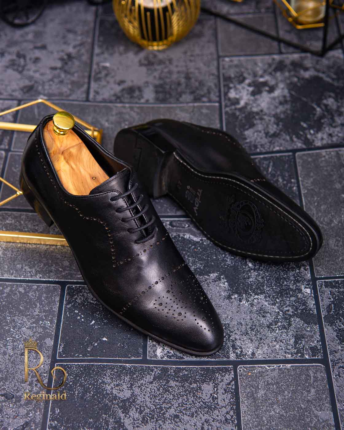 Pantofi de barbati cu siret, realizati manual, din piele naturala, atat la interior cat si la exterior.