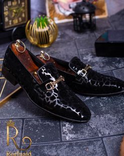 Pantofii negri lacuiti cu piele intoarsa LOAFERS vor atrage toate privirile atunci cand va veti prezenta la un eveniment de gala, acest lucru este influentat de aspectului si designului inedit. Usor de asortat cu majoritatea costumelor noastre, comozi si prezentabili, sigur nu vor trece neobservati.
