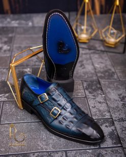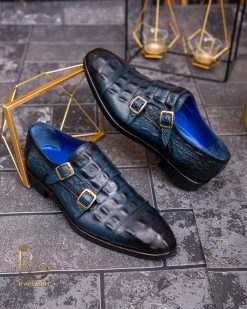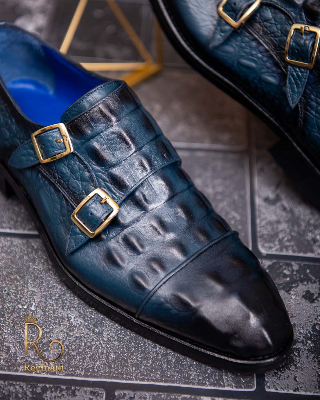 - Stil pantof double monk, piele naturala, cu catarame aurii