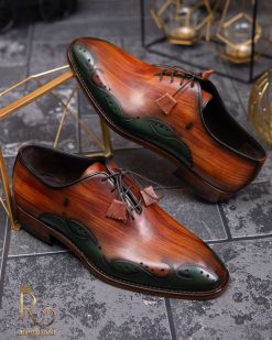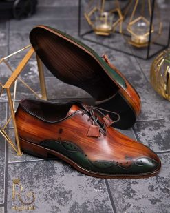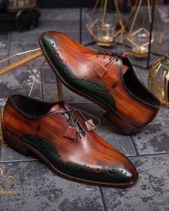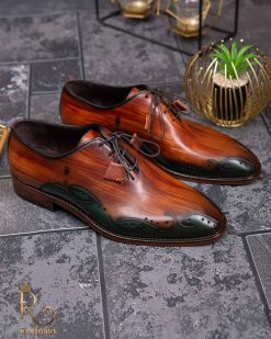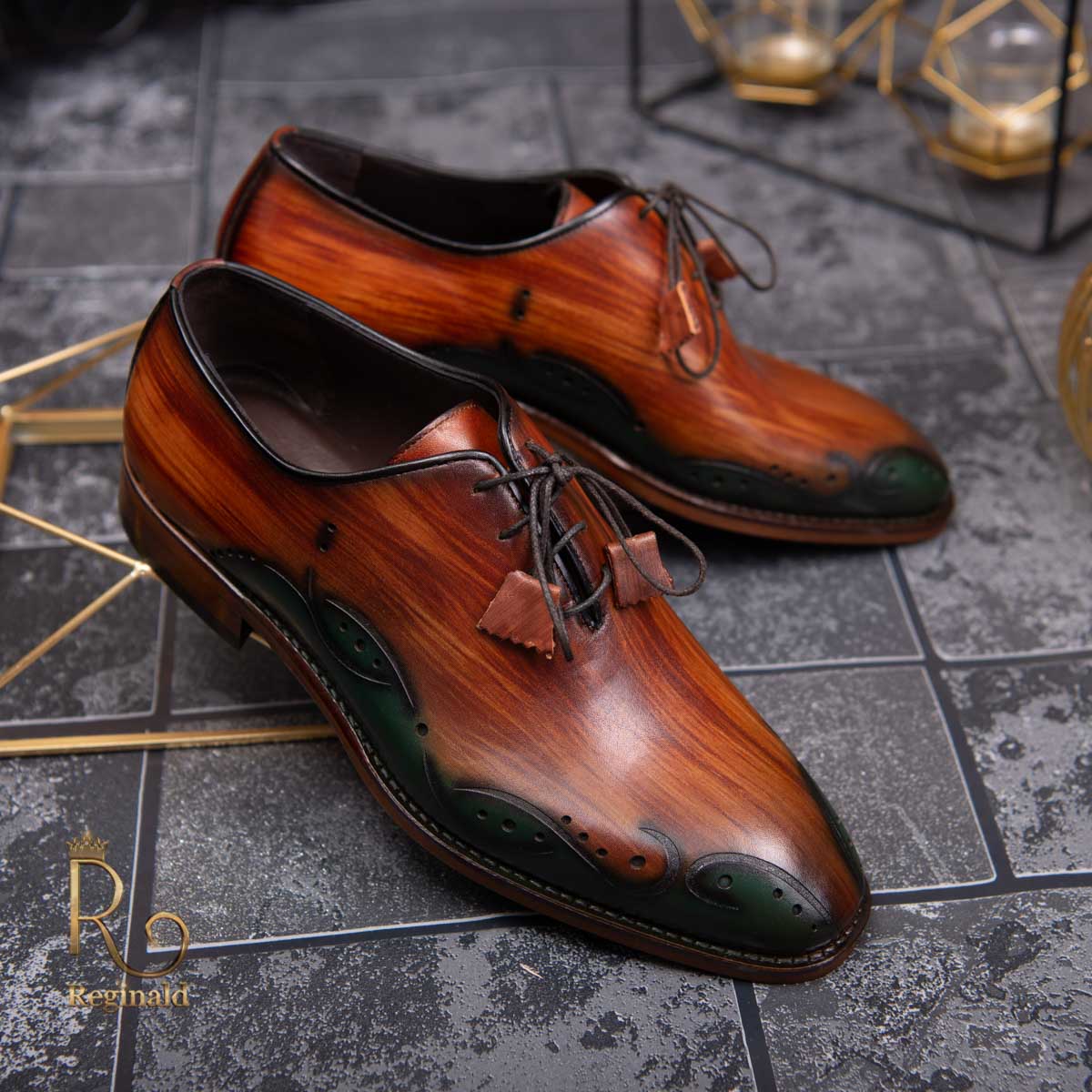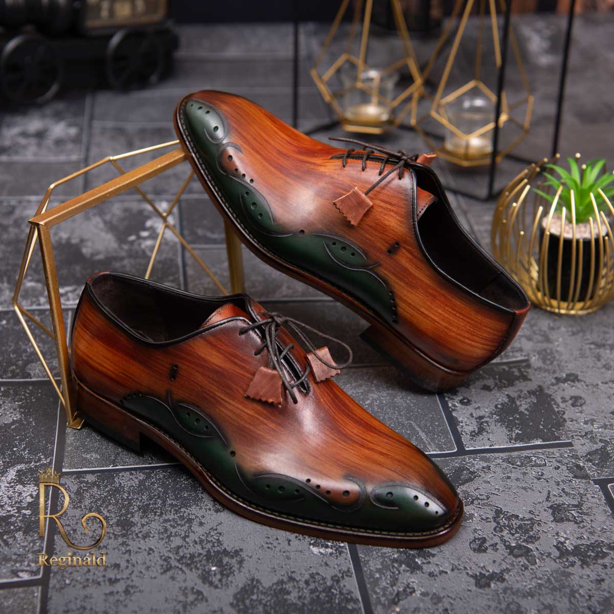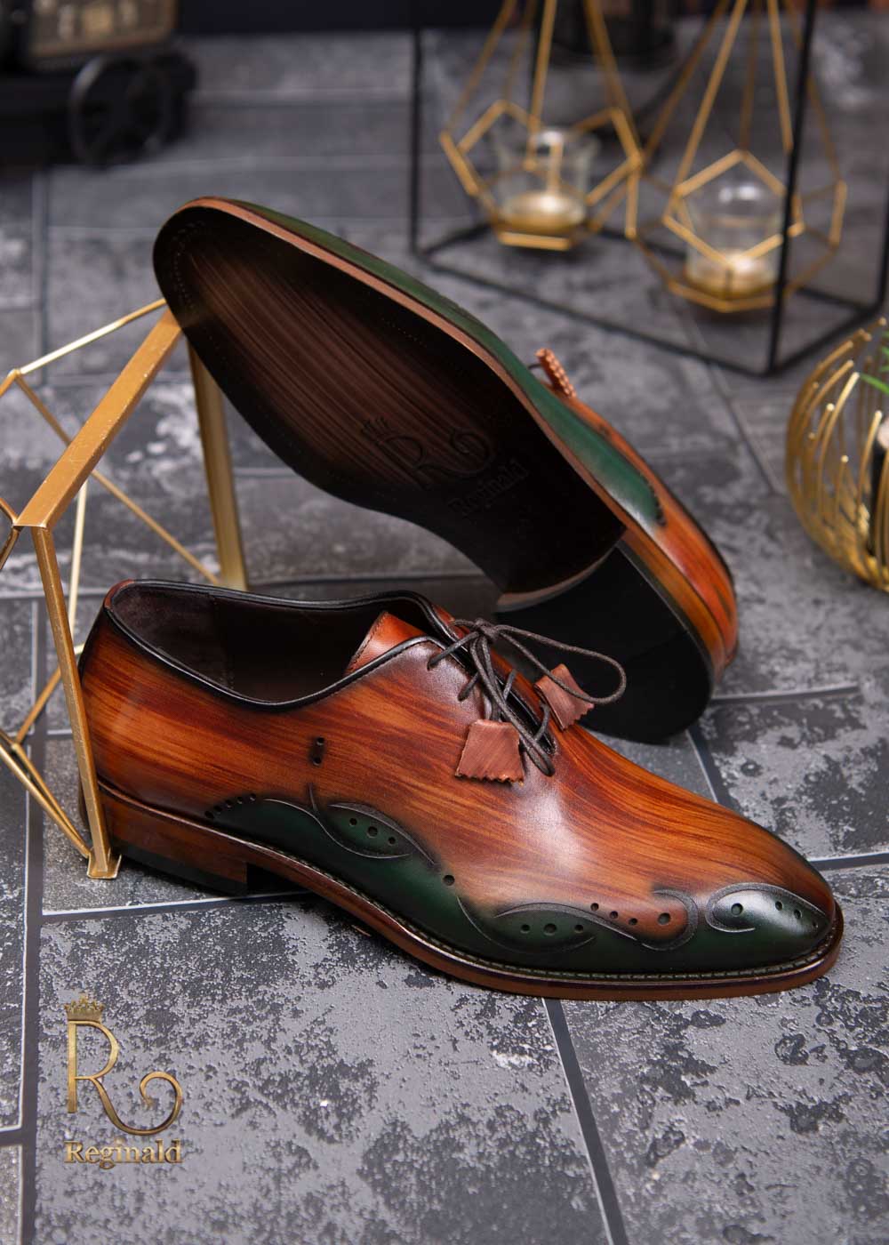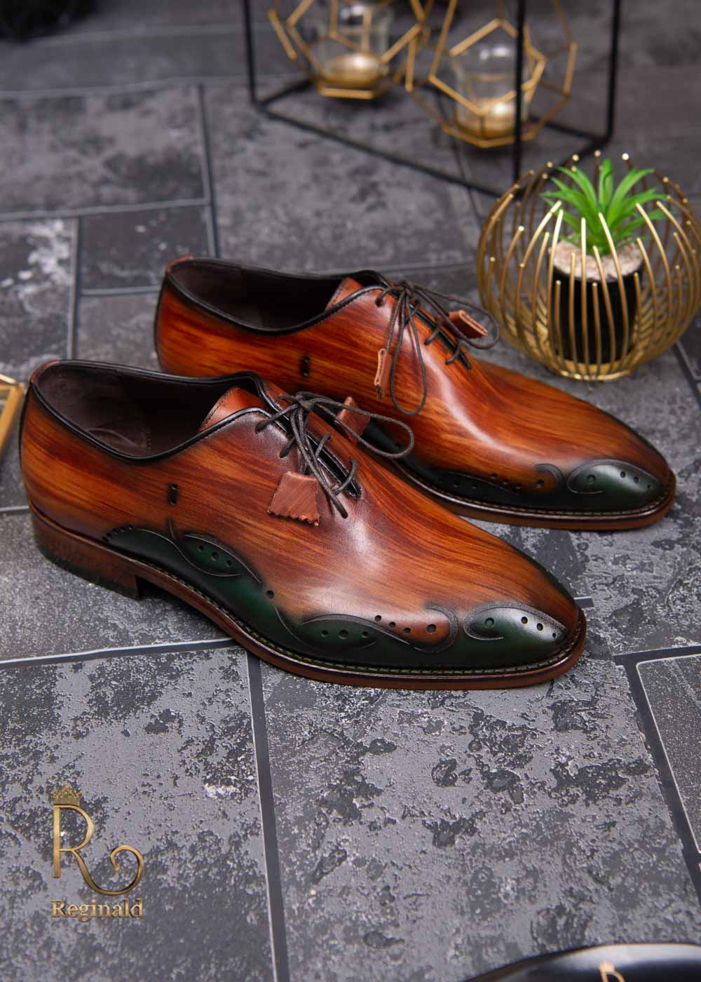 Pantofi eleganti barbatesti din piele naturala, maro cu verde, colectia Reginald. Pantofi realizat din piele de cea mai înaltă calitate perfecti pentru toate ocaziile formale.