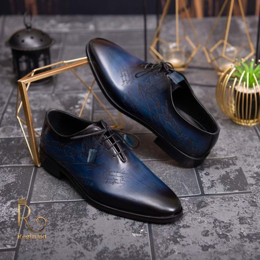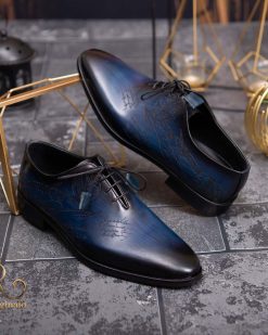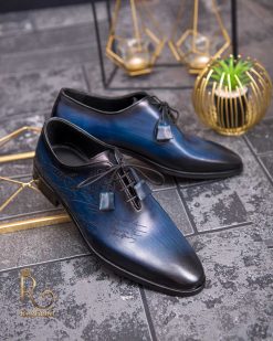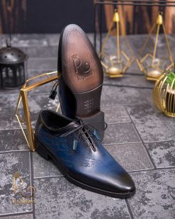 Pantofi eleganți de bărbați din piele naturala, Albastru gravat – P1575
