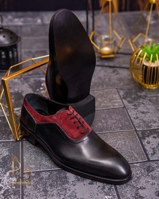 Pantofi eleganți de bărbați din piele naturala, Negru cu bordo – P1612