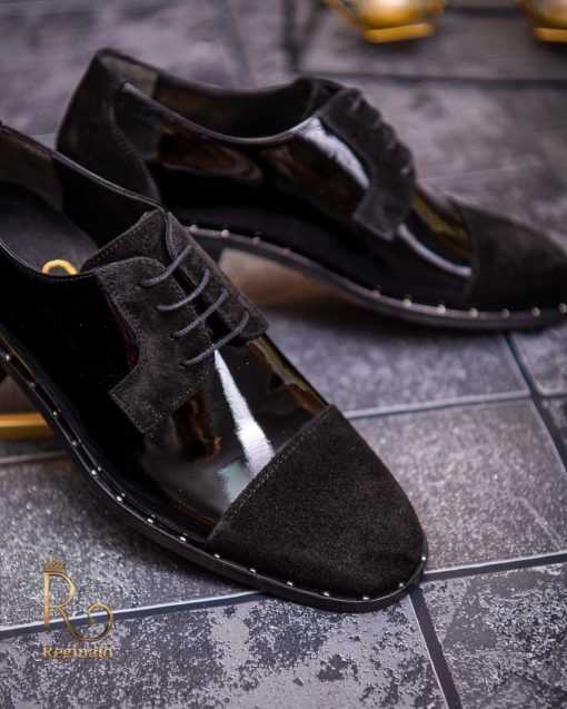 Pantofi eleganti de barbati din piele naturala, bleumarin cu model impletit, colectia Reginald. Pantofi realizat din piele de cea mai înaltă calitate perfecti pentru toate ocaziile formale.