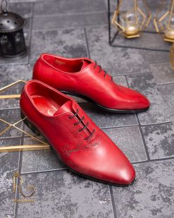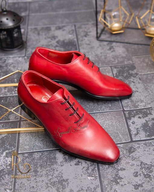Pantofi eleganți de bărbați din piele naturala, Roșu gravat – P1546