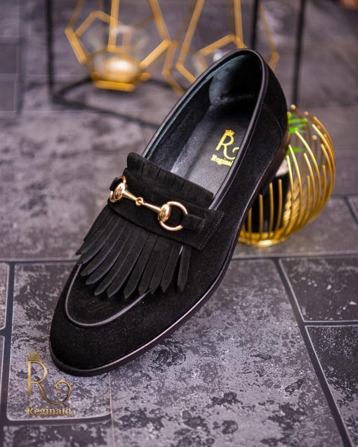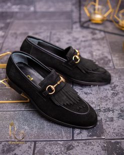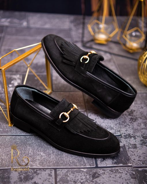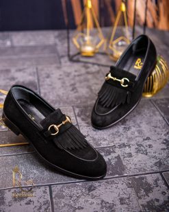 Pantofi Loafers, barbatesti, negri, piele intoarsa- P1760