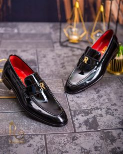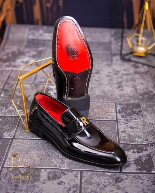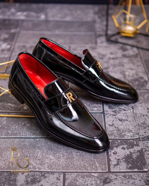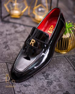 Pantofi Loafers de barbati din piele naturala, negri lacuit si catifea, colectia Reginald. Pantofi realizat din piele de cea mai înaltă calitate perfecti pentru toate ocaziile formale.