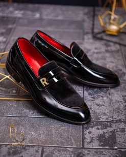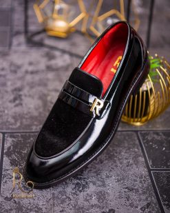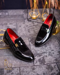 Pantofi Loafers de barbati din piele naturala, negri lacuit si catifea, colectia Reginald. Pantofi realizat din piele de cea mai înaltă calitate perfecti pentru toate ocaziile formale.