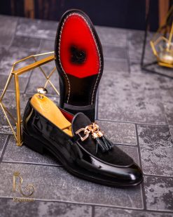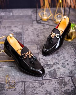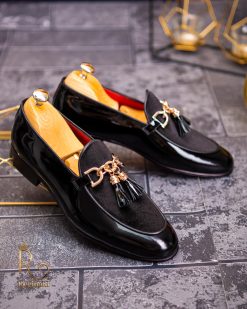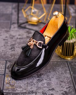 Pantofi Loafers de barbati din piele naturala, negri lacuit si catifea, colectia Reginald. Pantofi realizat din piele de cea mai înaltă calitate perfecti pentru toate ocaziile formale.