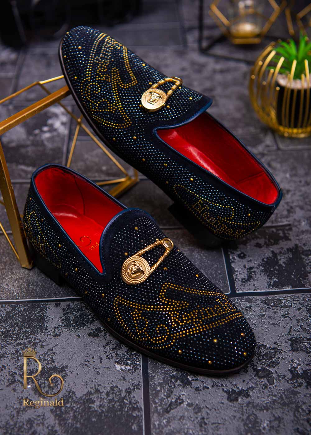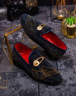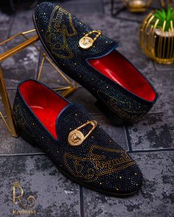 - Exterior: Piele naturala catifelata cu strasuri stralucitoare