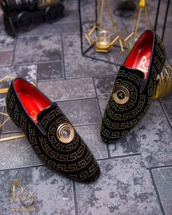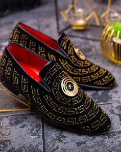 - Exterior: Piele naturală, catifea, strasuri aurii