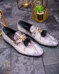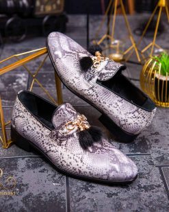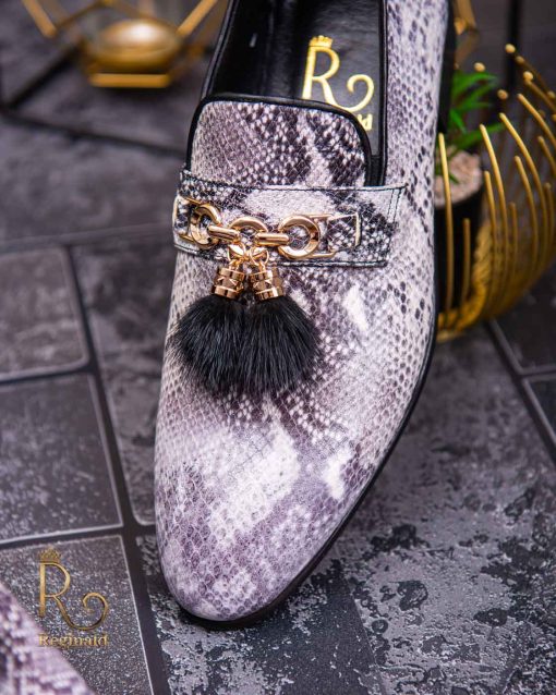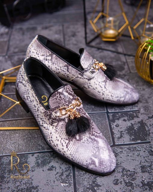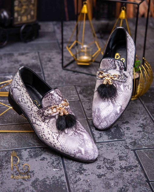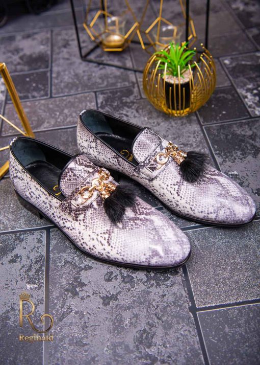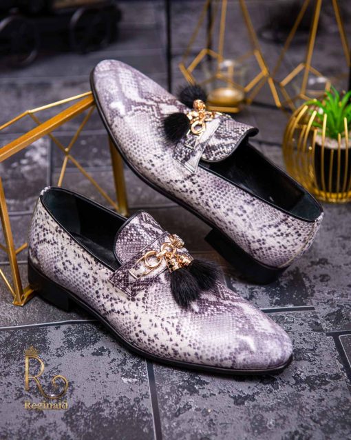 Pantofi Loafers de barbati din piele naturala, textura piele de sarpe, lacuiti, colectia Reginald. Pantofi realizat din piele de cea mai înaltă calitate perfecti pentru toate ocaziile formale.