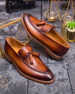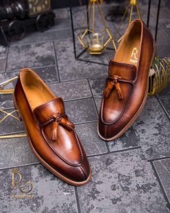 - Stil loafers/mocasini din piele naturala cu ciucuri