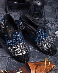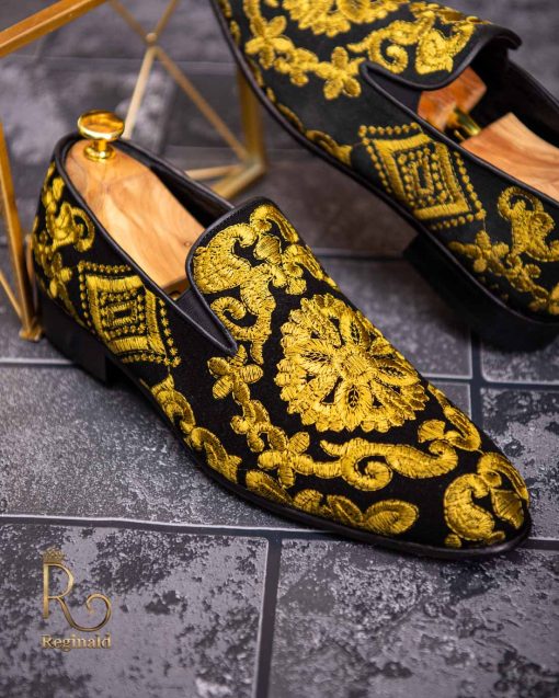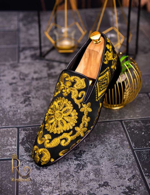 Pantofi Loafers de barbati din piele naturala, negri brodati fir auriu, colectia Reginald. Pantofi realizat din piele de cea mai înaltă calitate perfecti pentru toate ocaziile formale.