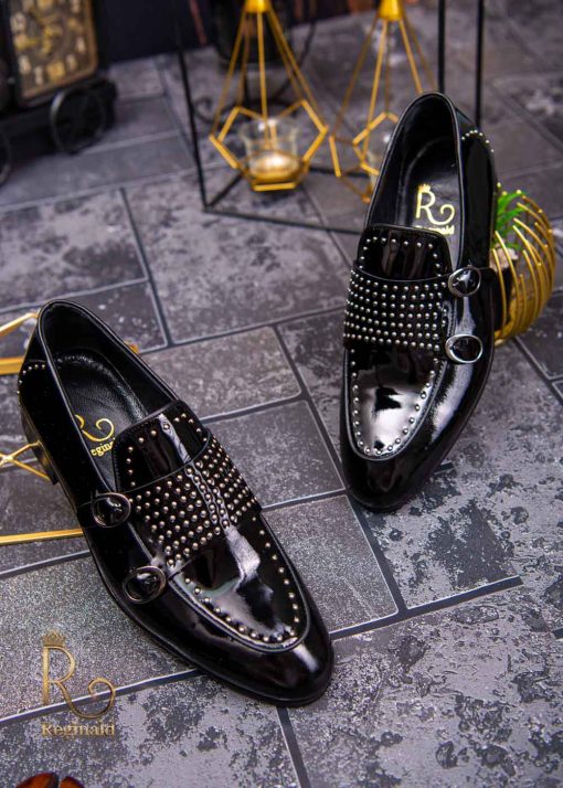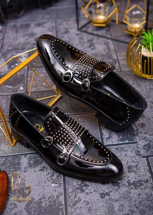 Pantofi Loafers de barbati din piele naturala,negri lacuiti cu tinte, colectia Reginald. Pantofi realizat din piele de cea mai înaltă calitate perfecti pentru toate ocaziile formale.