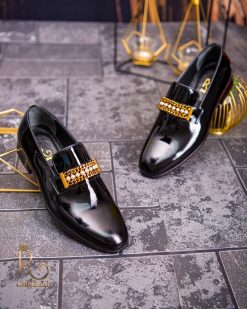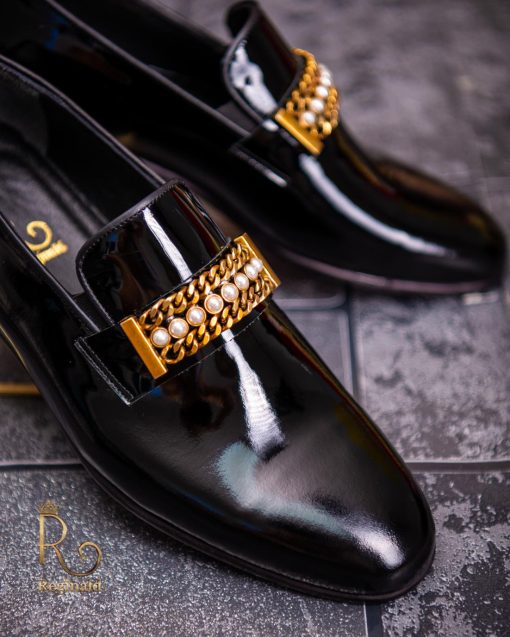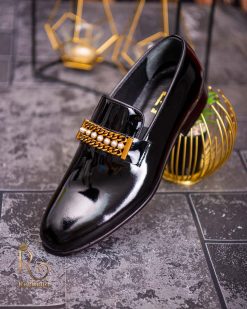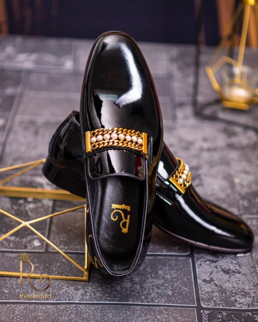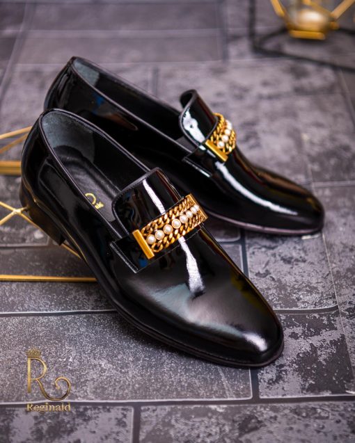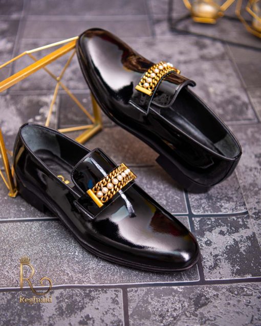 Pantofi Loafers de barbati din piele naturala, negri lacuit si catifea, colectia Reginald. Pantofi realizat din piele de cea mai înaltă calitate perfecti pentru toate ocaziile formale.