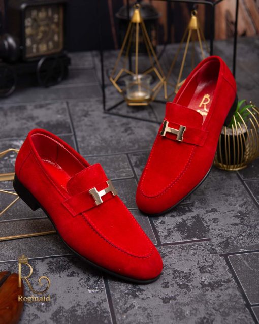 Pantofi Loafers de barbati din piele naturala, rosii, piele intoarsa, colectia Reginald. Pantofi realizat din piele de cea mai înaltă calitate perfecti pentru toate ocaziile formale.