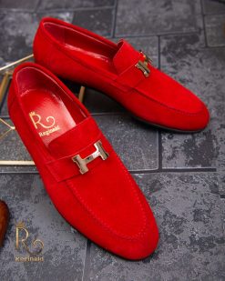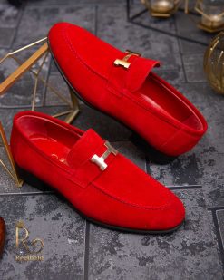 - Stil loafers/mocasini piele rosie intoarsa