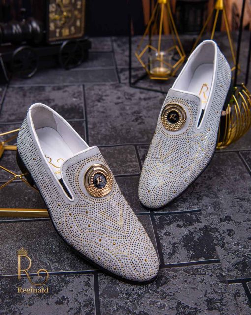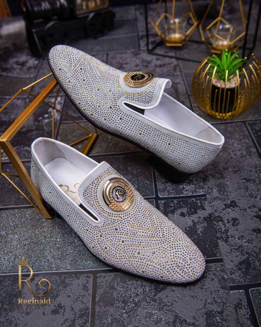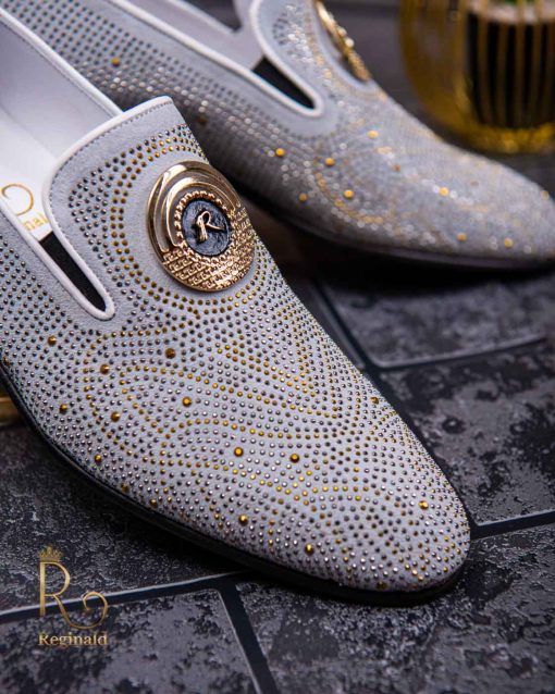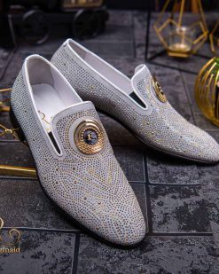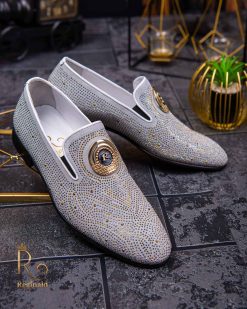 - Stil Mocasin/ Loafer elegant cu strasuri argintii si aurii