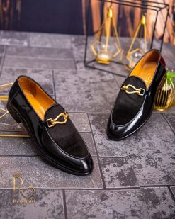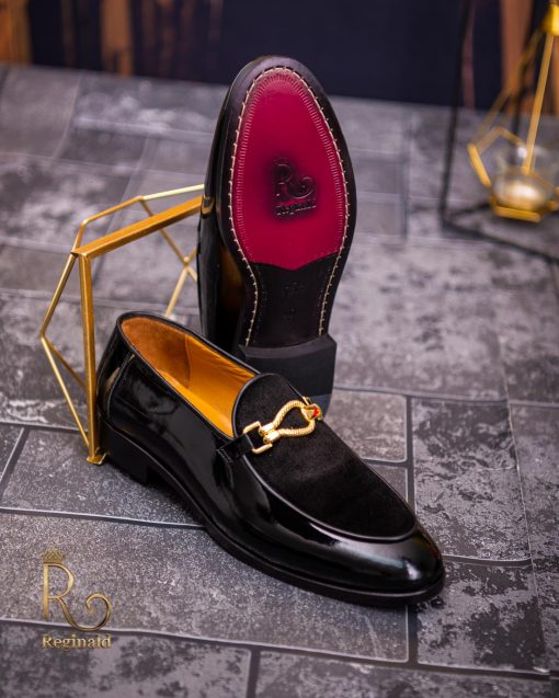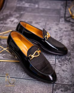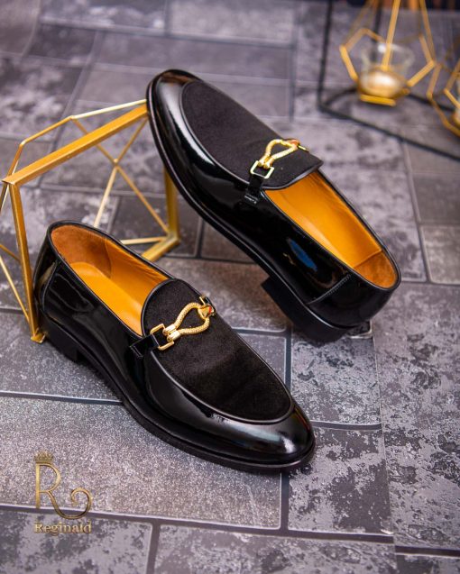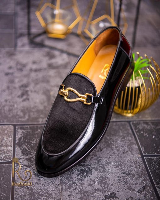Pantofi Loafers de barbati din piele naturala, negri lacuit si catifea, colectia Reginald. Pantofi realizat din piele de cea mai înaltă calitate perfecti pentru toate ocaziile formale.