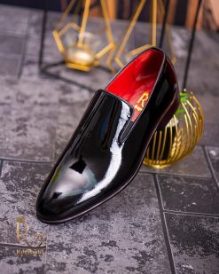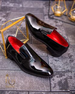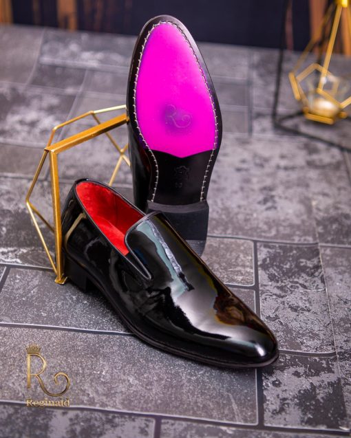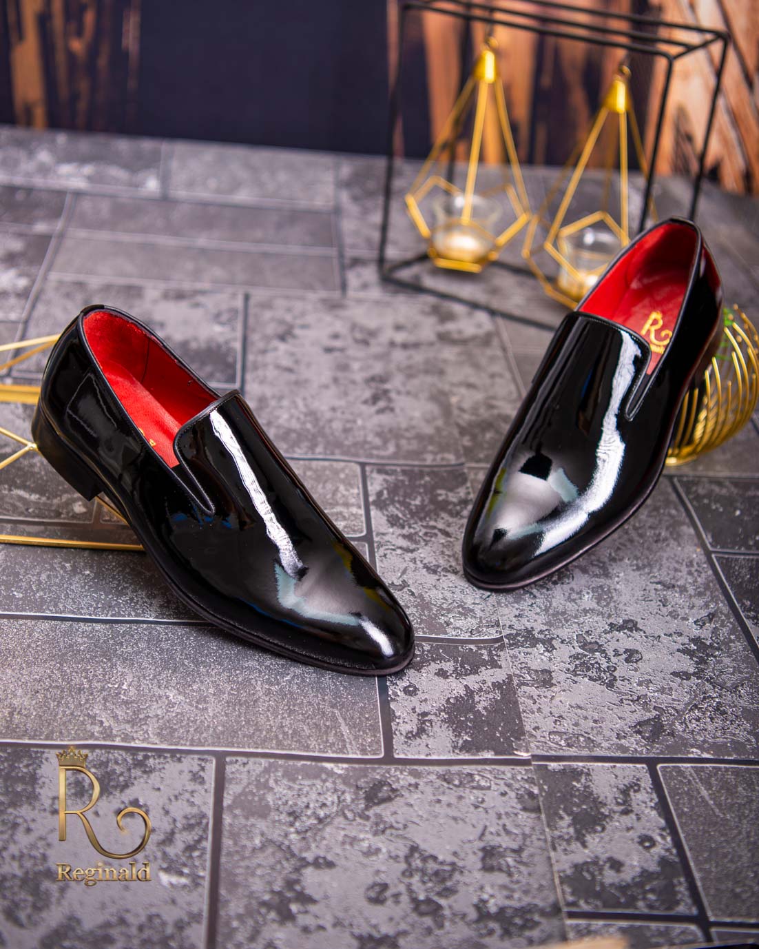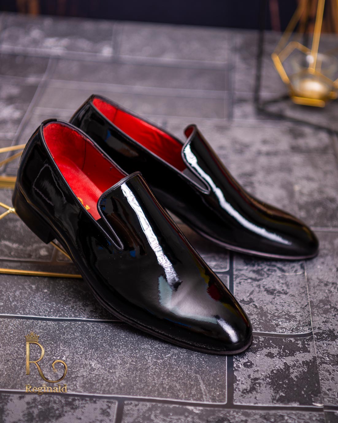 Pantofi Loafers de barbati din piele naturala, negri lacuit si catifea, colectia Reginald. Pantofi realizat din piele de cea mai înaltă calitate perfecti pentru toate ocaziile formale.