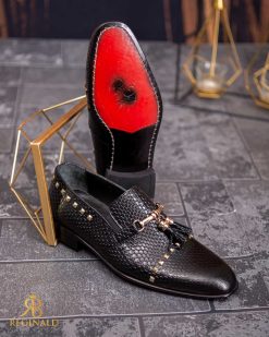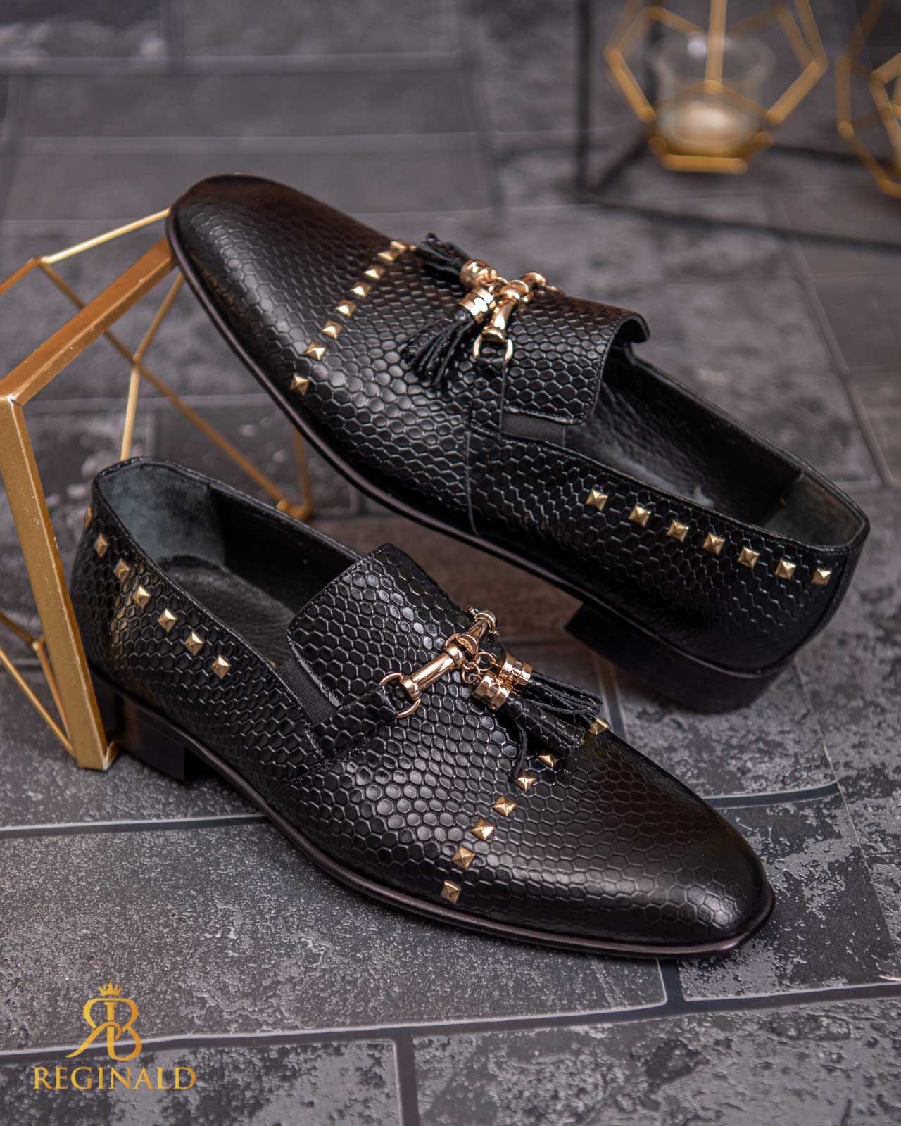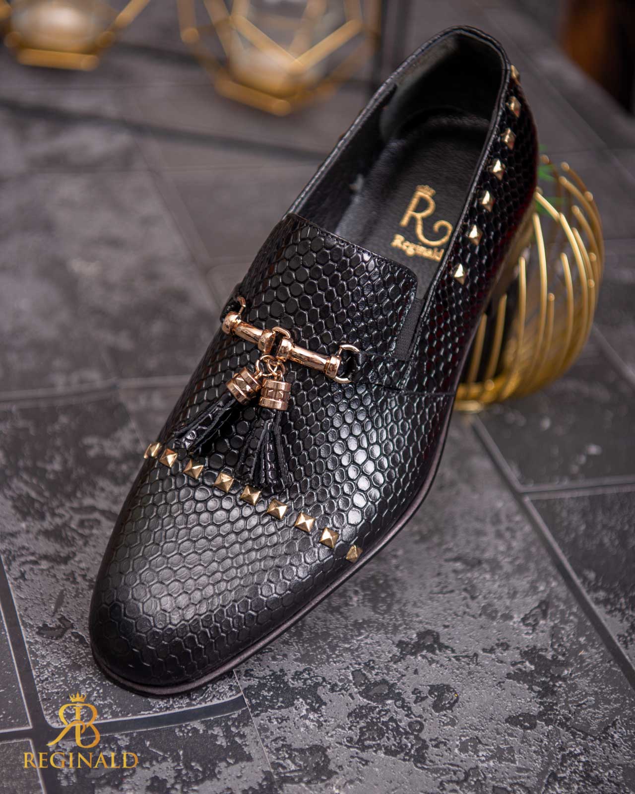 Finisajele premium completează fiecare pereche de pantofi Reginald, adăugând o notă subtilă de eleganță și strălucire. De la luciul subtil al pielii până la detaliile prelucrate manual, fiecare aspect este pus în valoare pentru a oferi o estetică impecabilă.