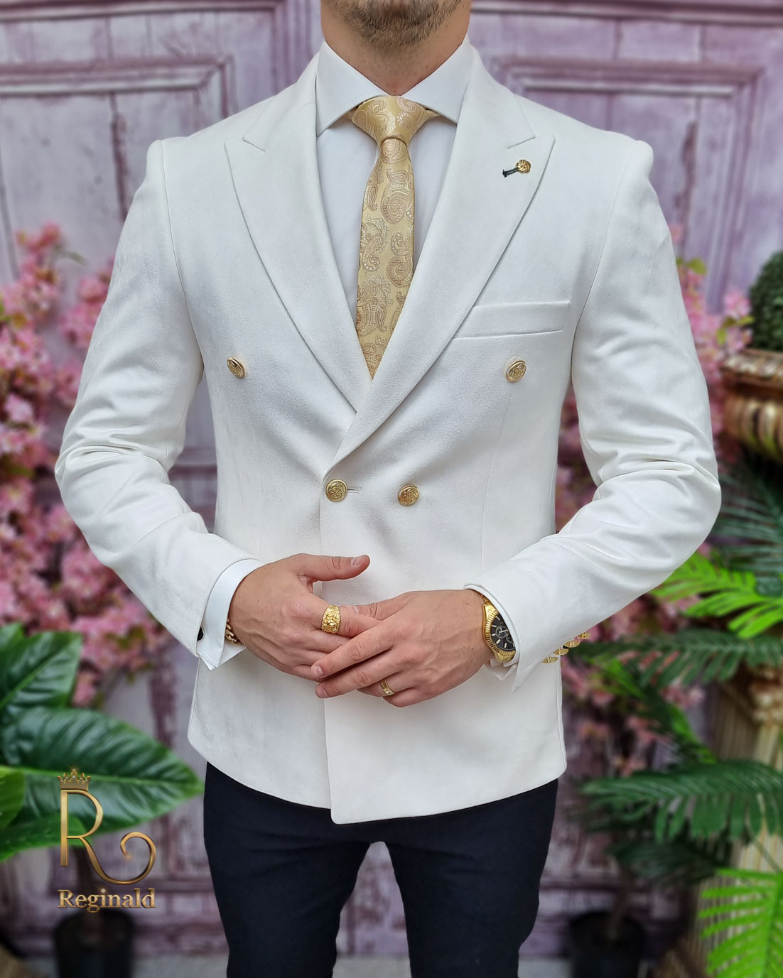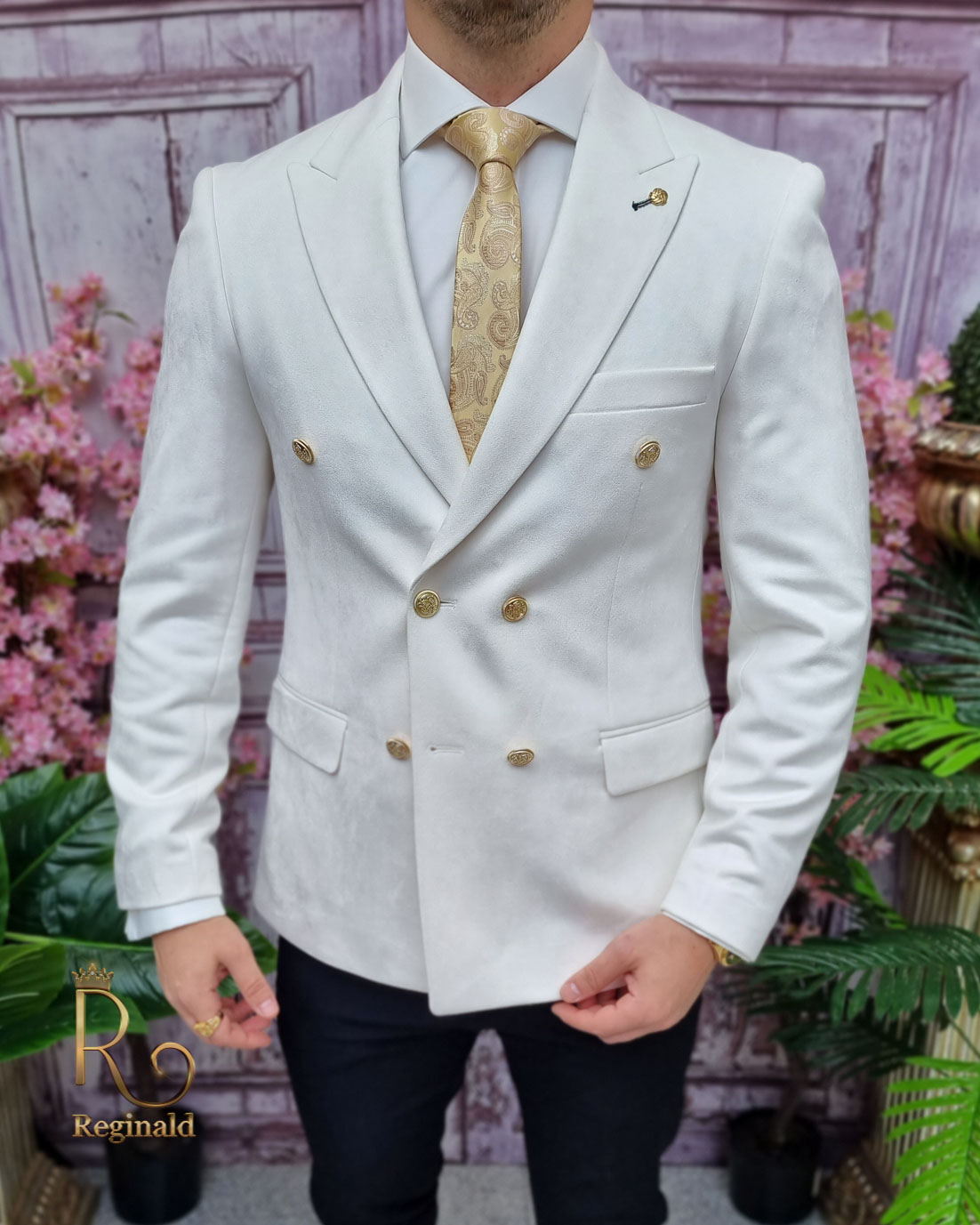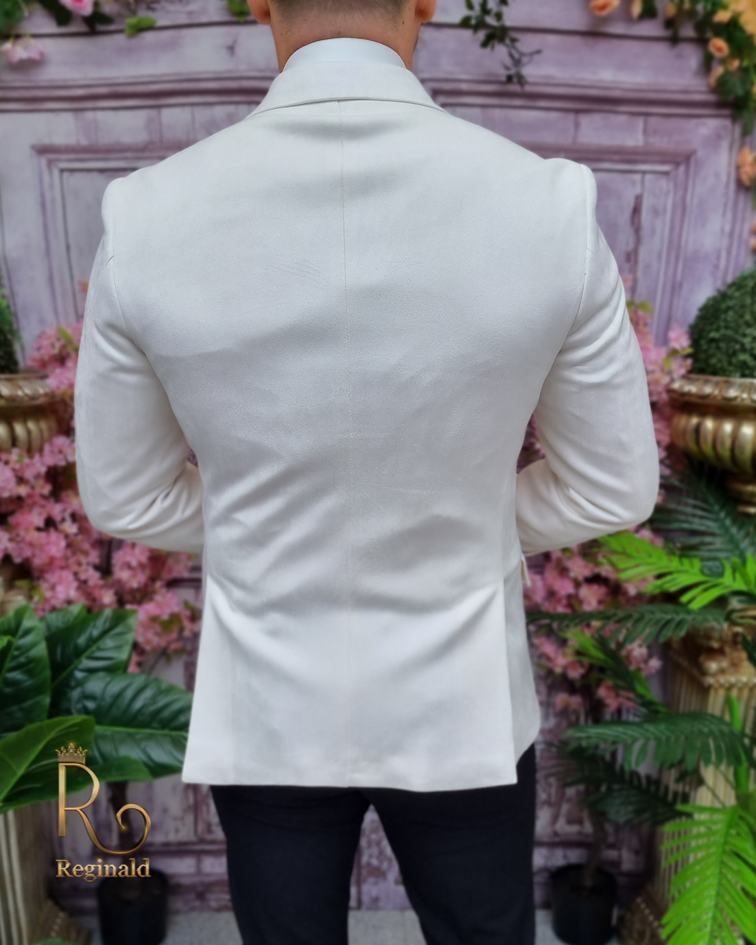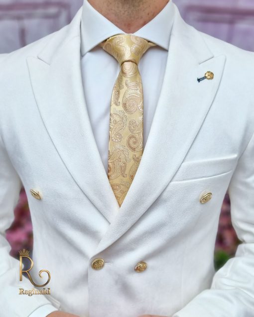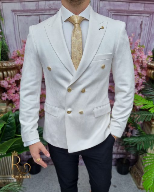 Sacou alb ivoire de bărbați, Slim Fit, Catifea fina – SC804