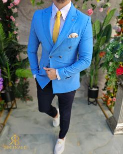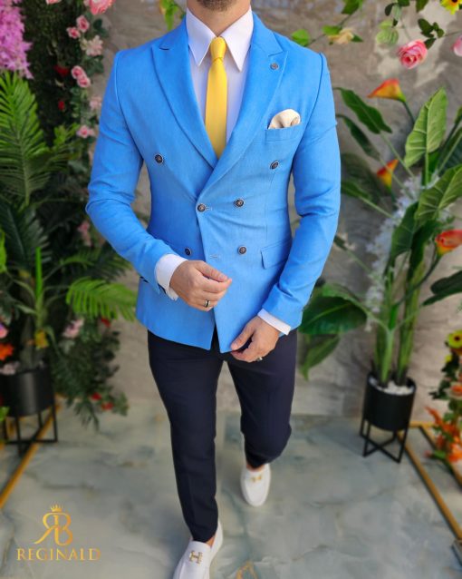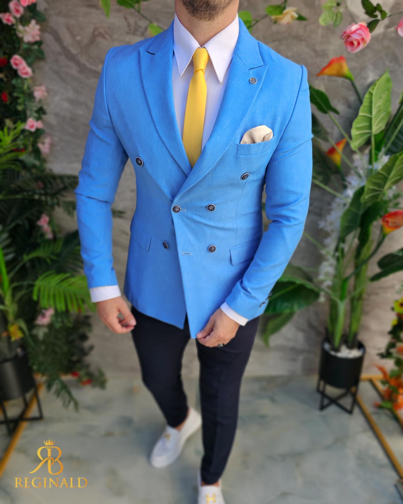 În general, un sacou de bărbați slim fit cu prindere într-un singur nasture poate fi purtat cu o cămașă elegantă și pantaloni asortați, pentru un aspect elegant.
