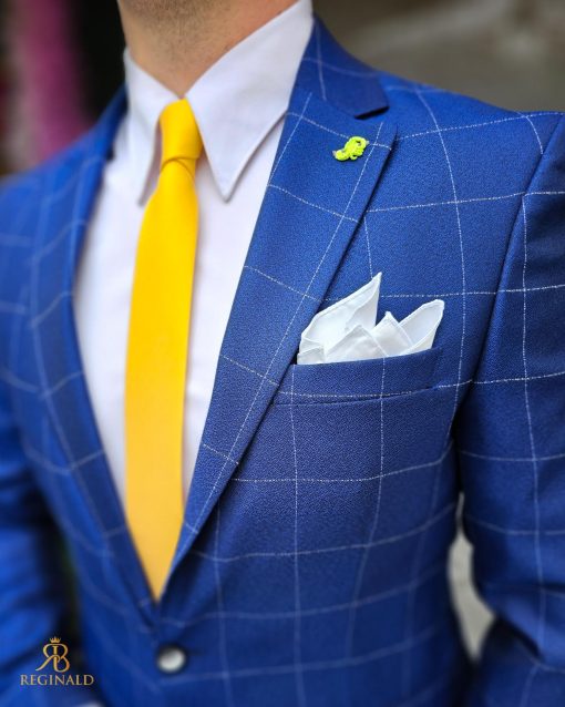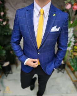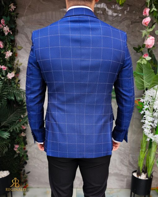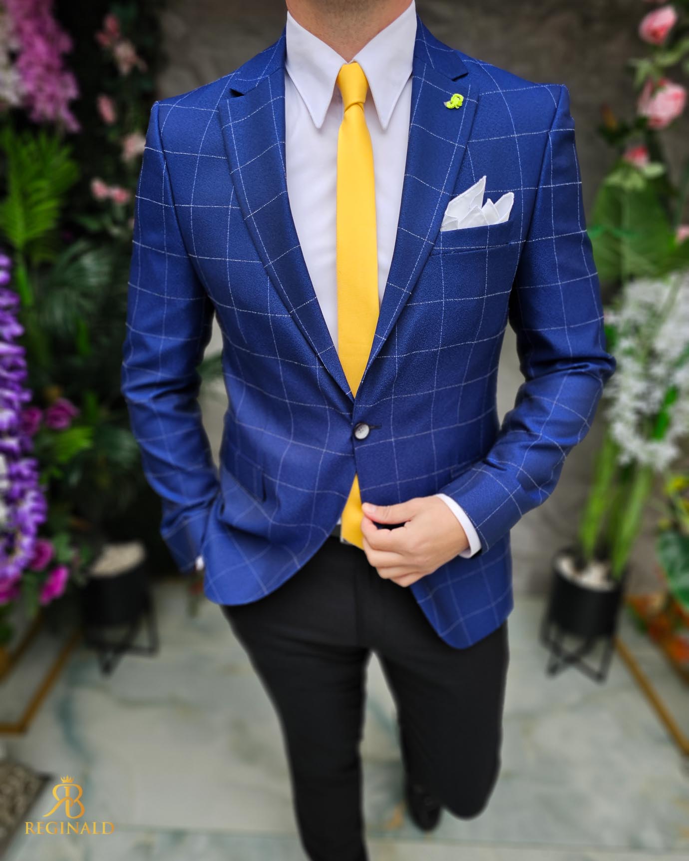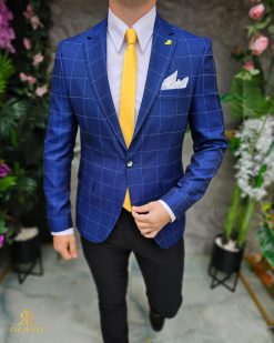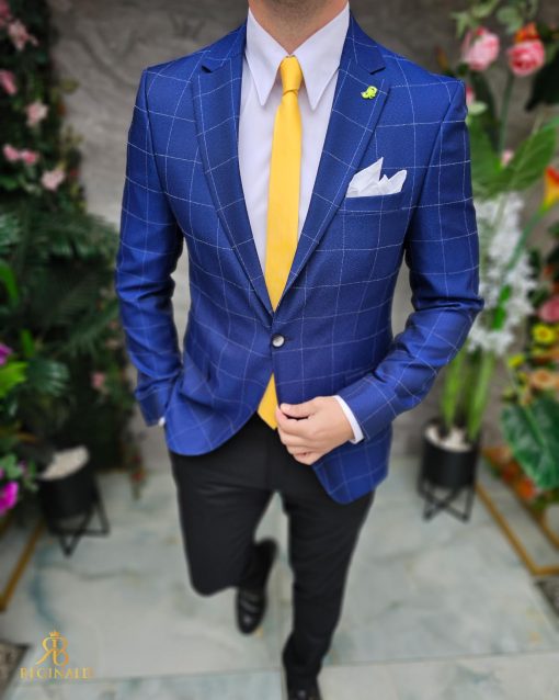 Sacou Albastru in carouri de bărbați, croiala Slim Fit- SC1021