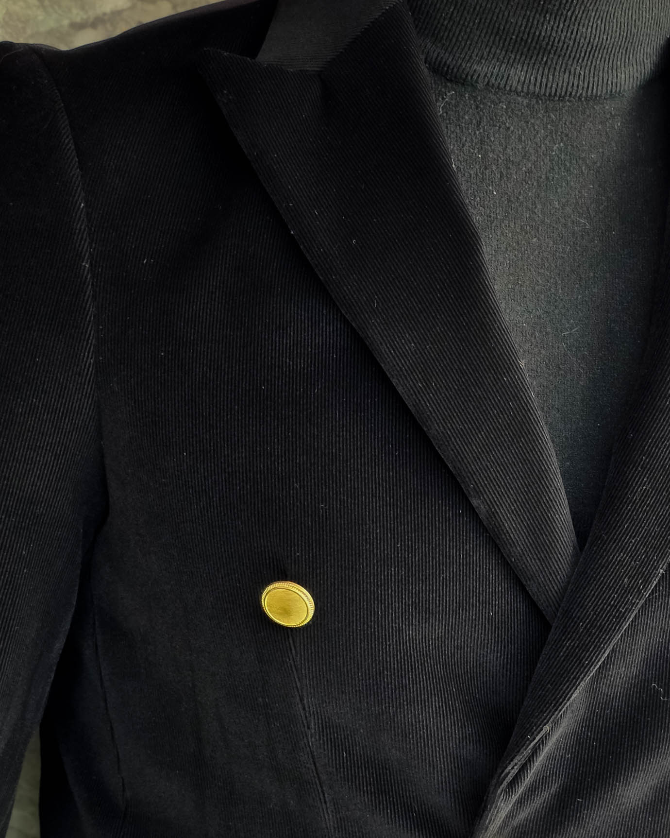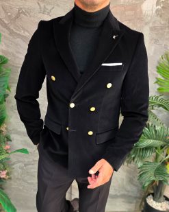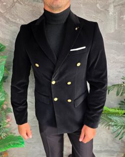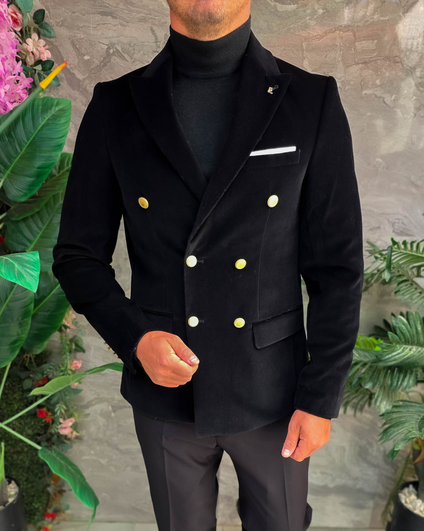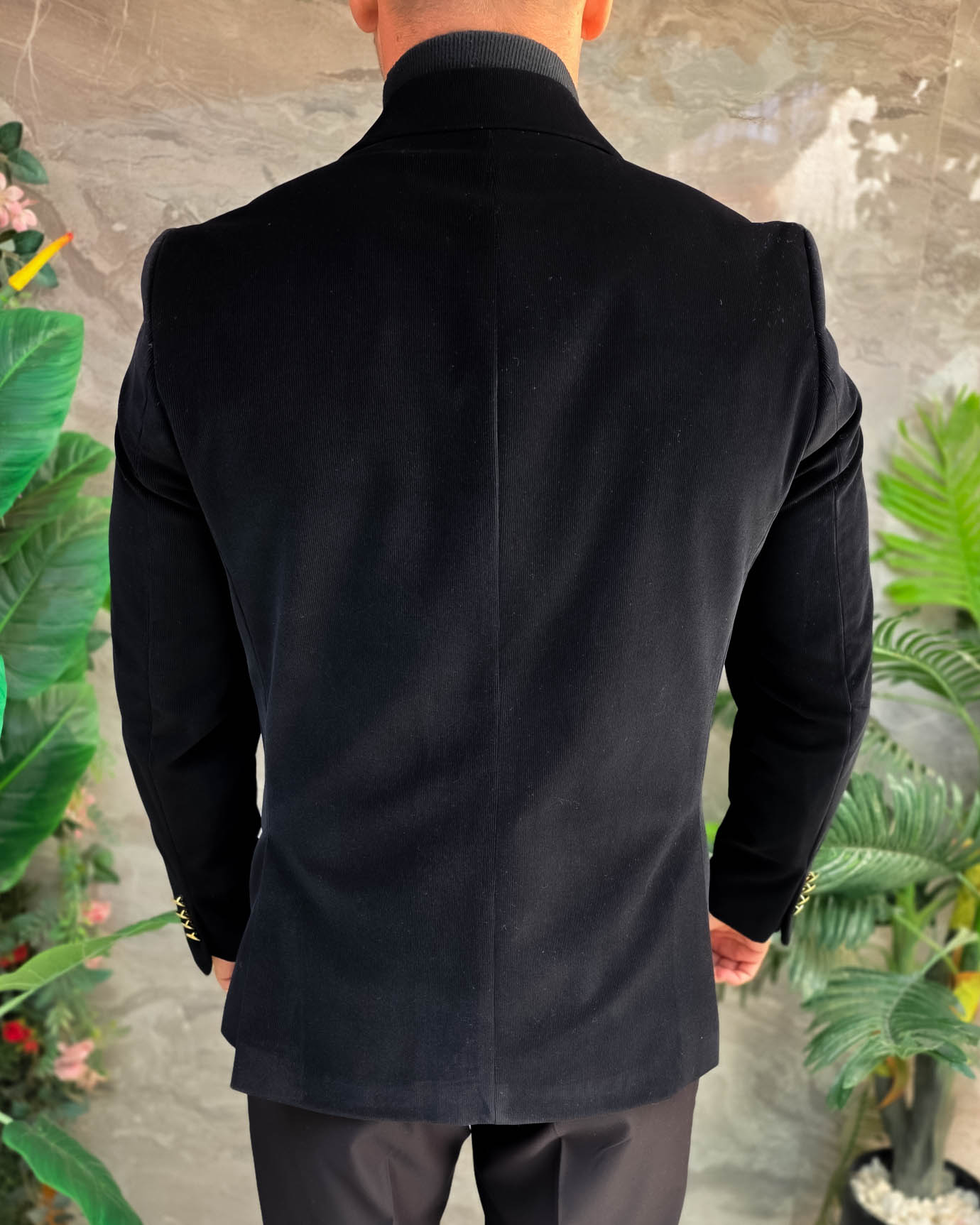 Sacou bărbătesc negru double-breasted cu nasturi aurii