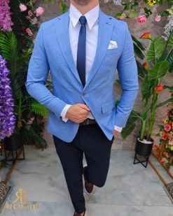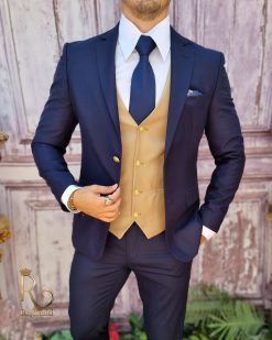 Sacou bleumarin si vesta bej de bărbați, Slim Fit – SC761