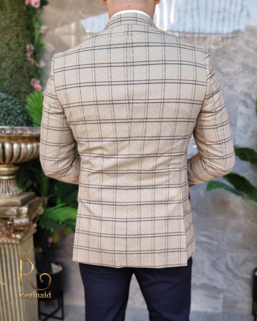 Sacou crem in carouri, croiala Slim-Fit – SC842