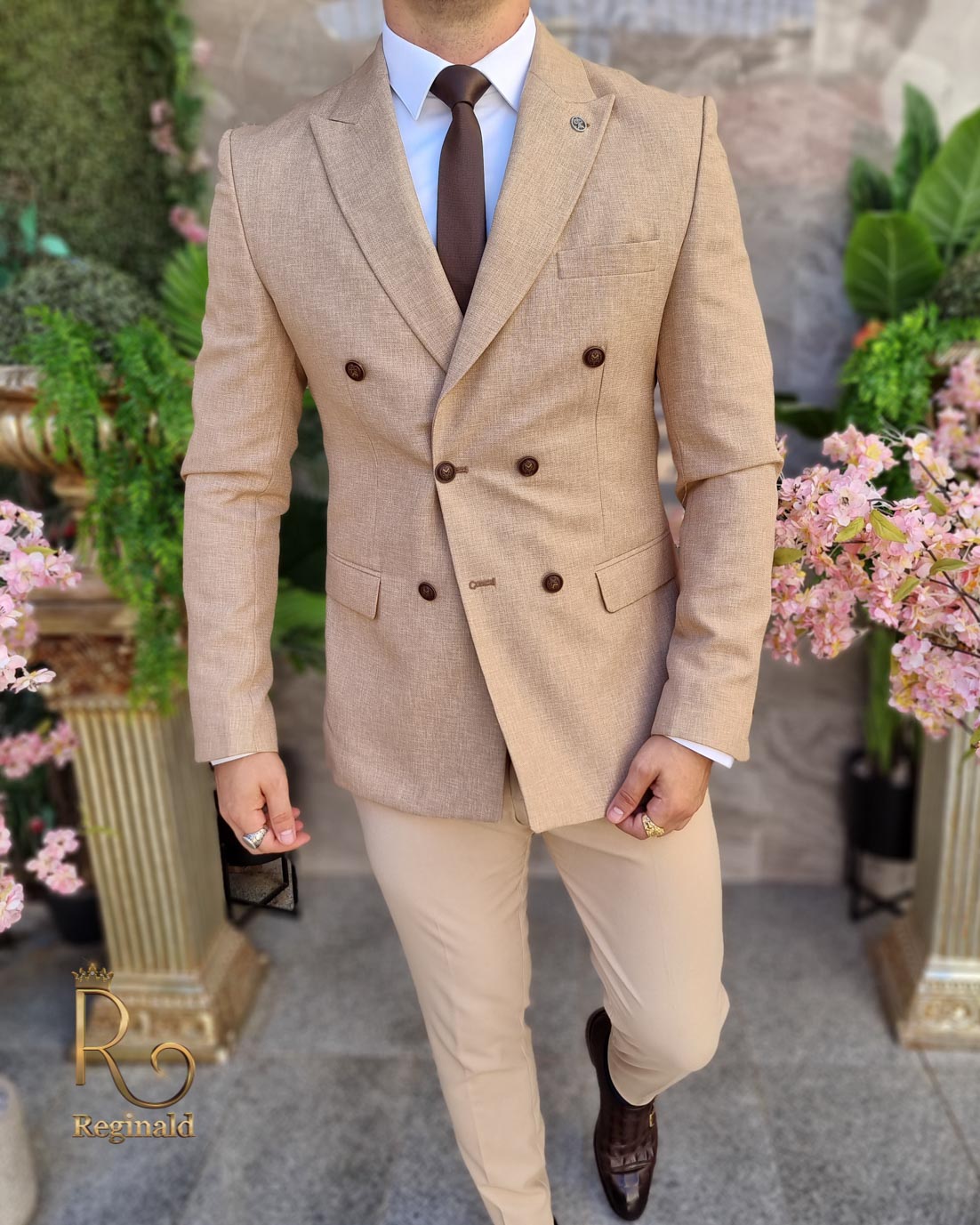 În general, un sacou de bărbați slim fit cu prindere într-un singur nasture poate fi purtat cu o cămașă elegantă și pantaloni asortați, pentru un aspect elegant.