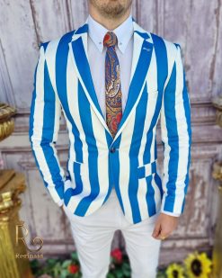 Sacou de bărbați alb in dungi albastre, croiala Slim-Fit – SC652