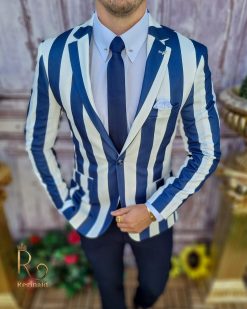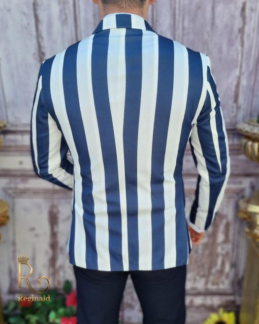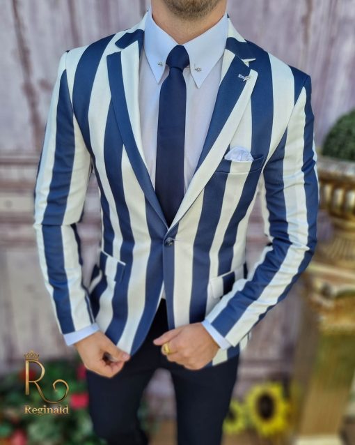 Sacou de bărbați alb in dungi bleumarin, croiala Slim-Fit – SC609