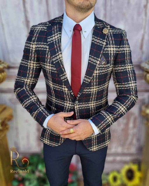 Sacou de bărbați bleumarin in carouri, croiala Slim-Fit – SC613