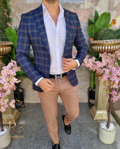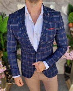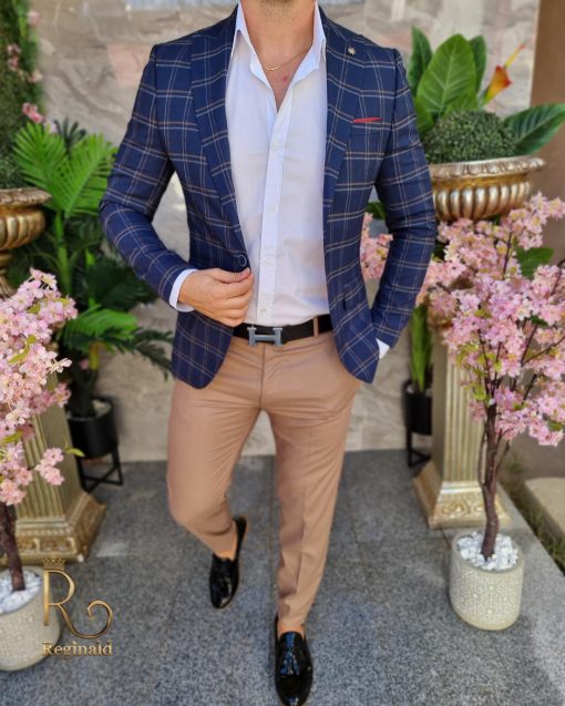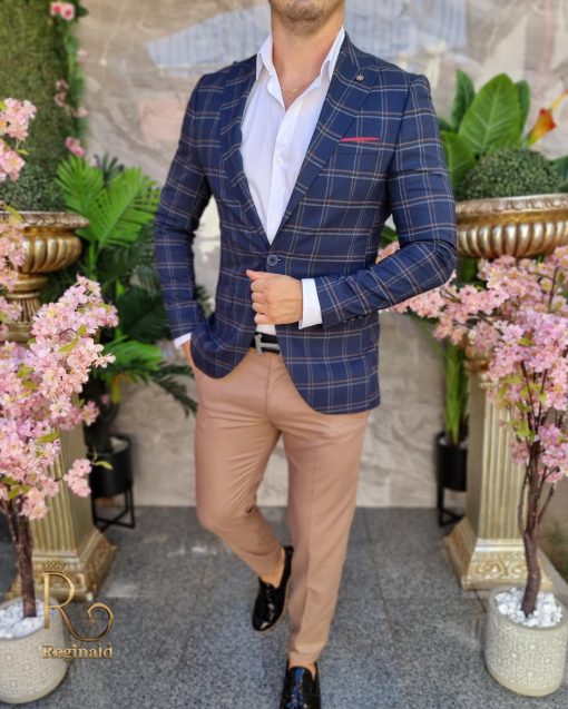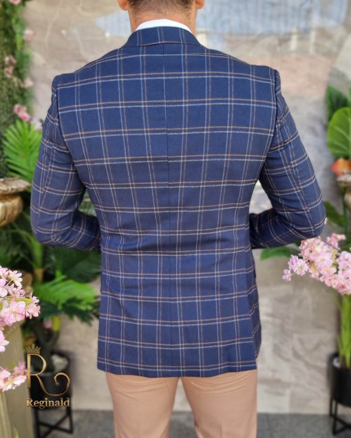 Sacou de bărbați bleumarin in carouri, Slim-Fit – SC837