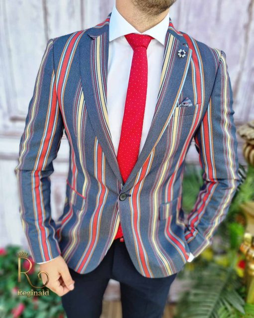 Sacou de barbati bleumarin in dungi, croiala Slim-Fit – SC539