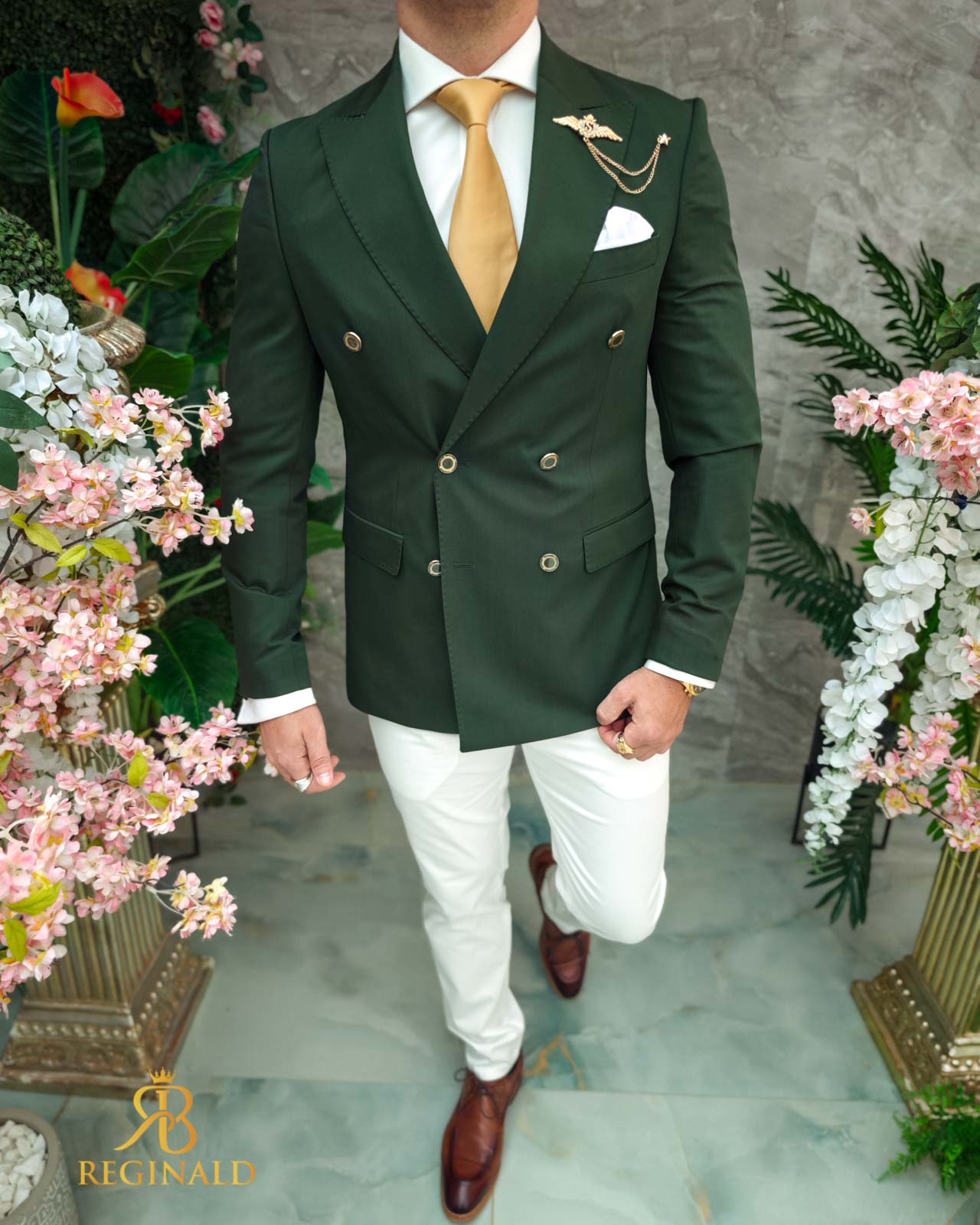 Sacou de bărbați, Double Breasted, Verde, Slim Fit – SC882