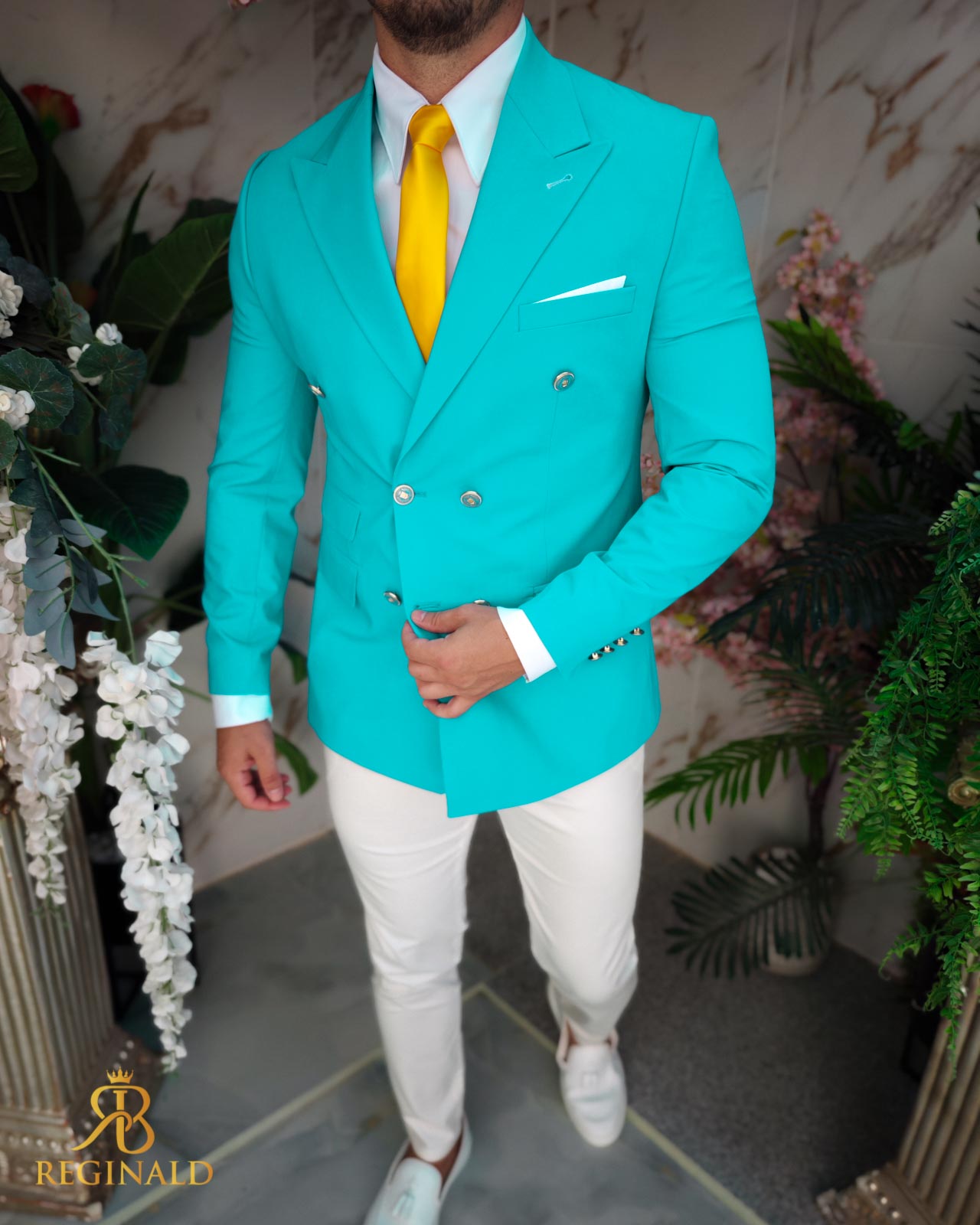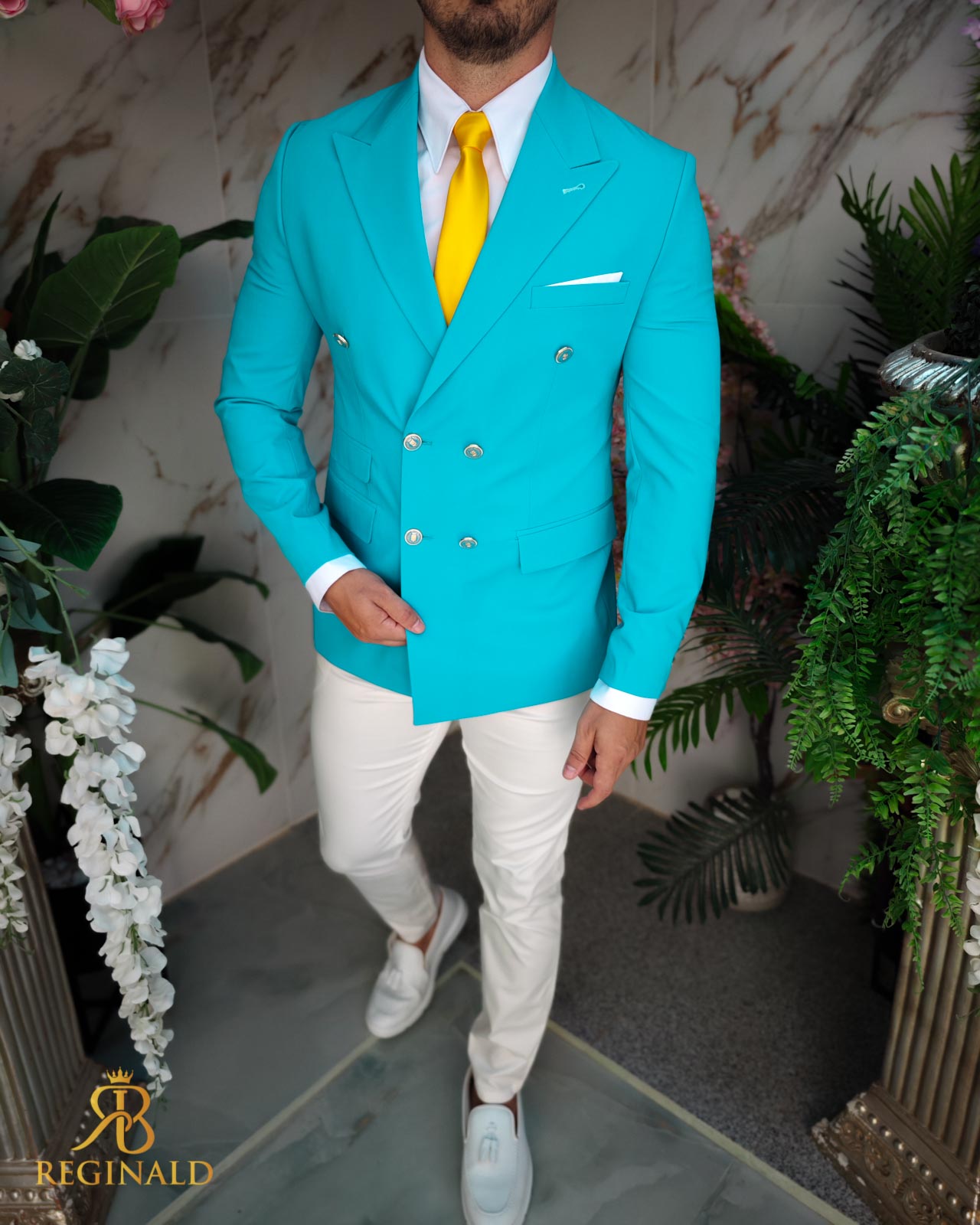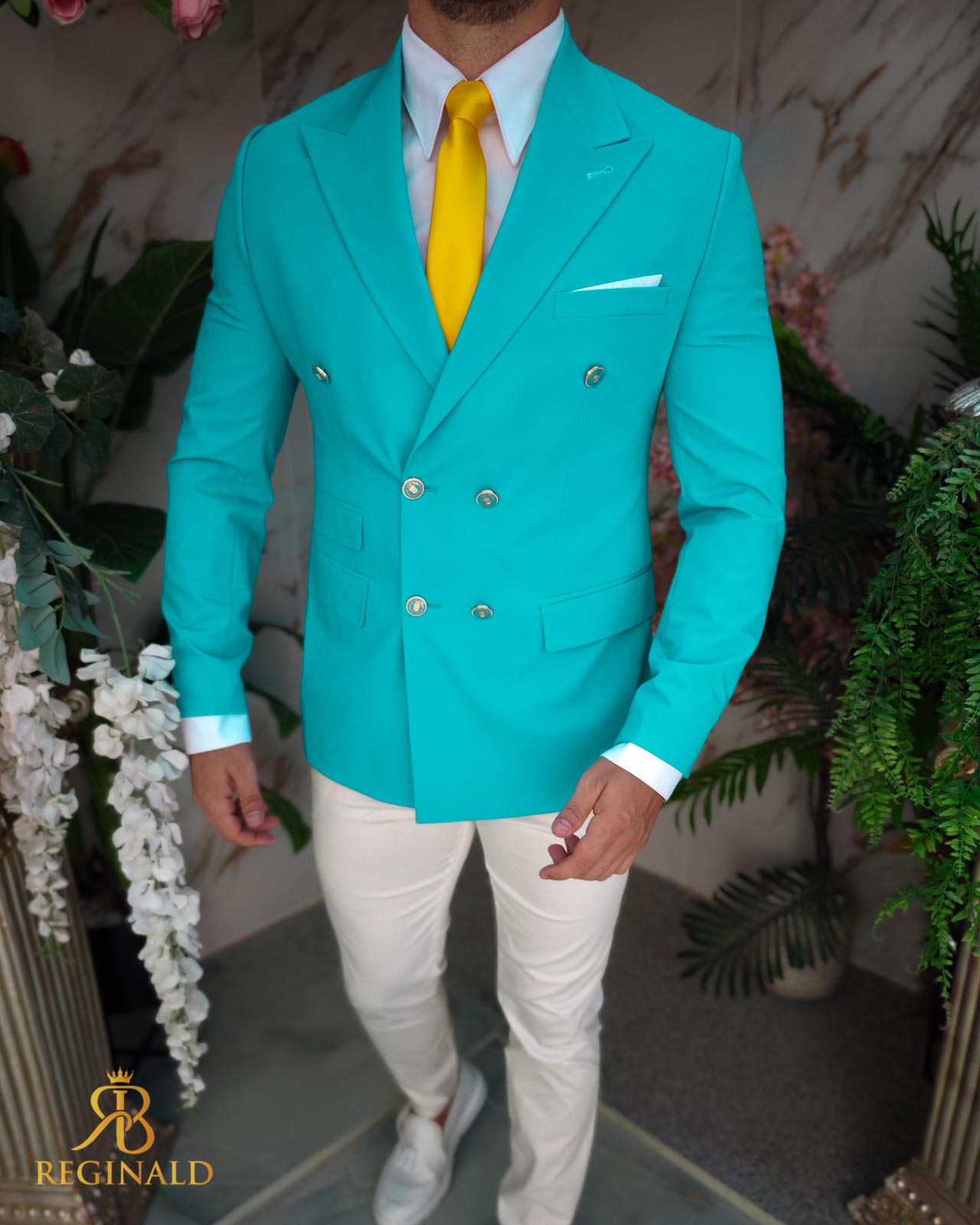 Cravata + Batista turcoaz satinata de barbati - CV204