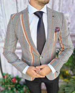 Sacou de barbati gri cu model, croiala Slim-Fit – SC546