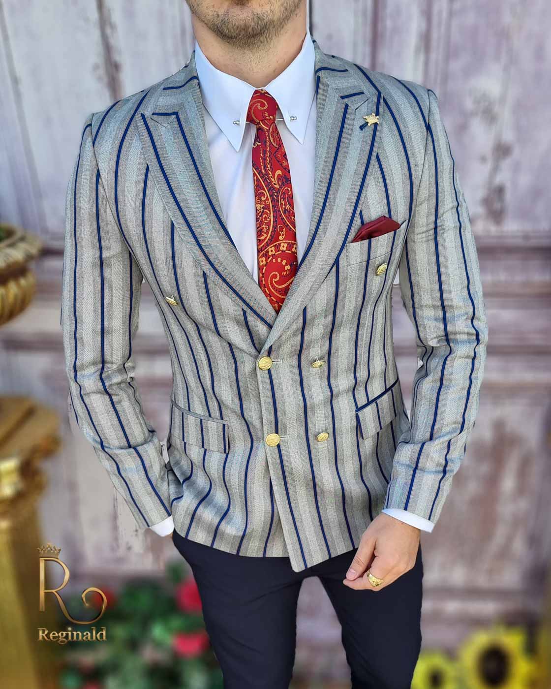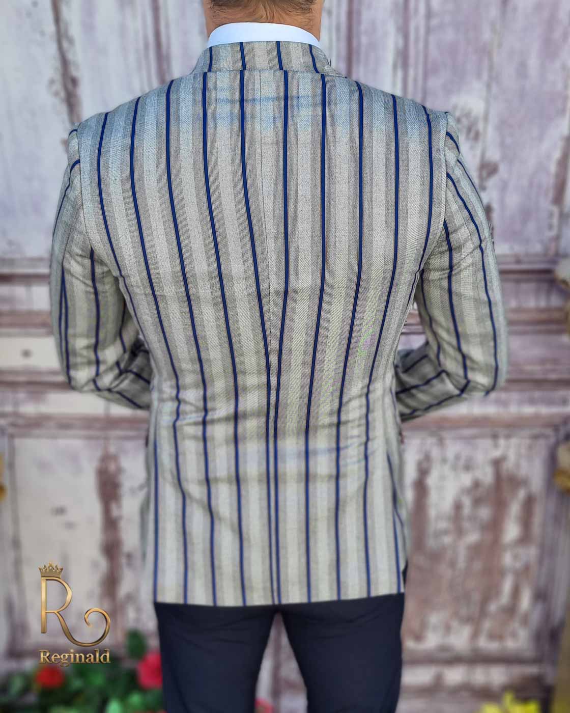 Sacou de bărbați, Gri in dungi albastre, Croiala Slim-Fit – SC622