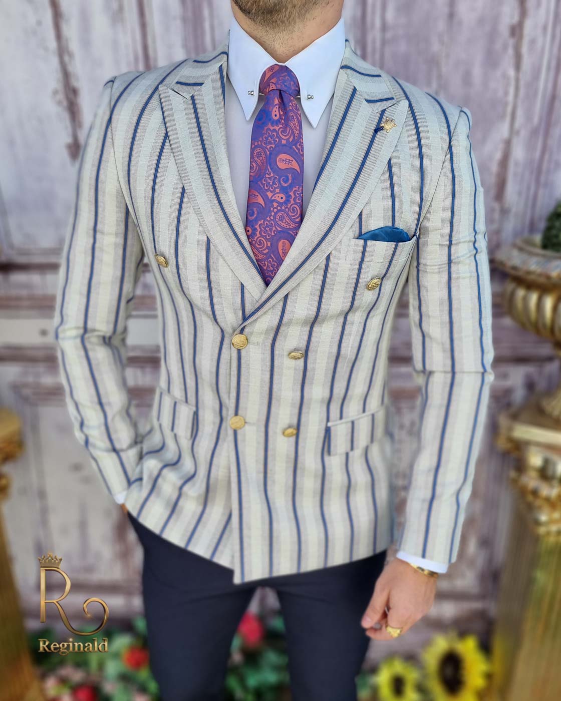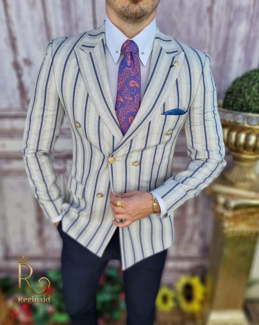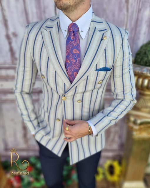 Sacou de bărbați gri in dungi, croiala Slim-Fit – SC650