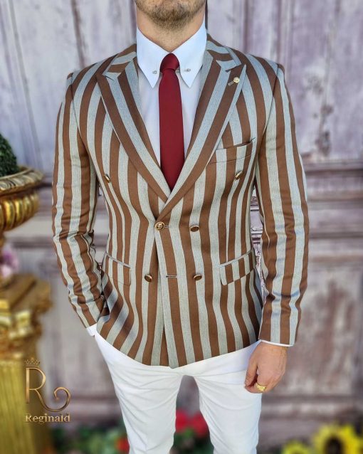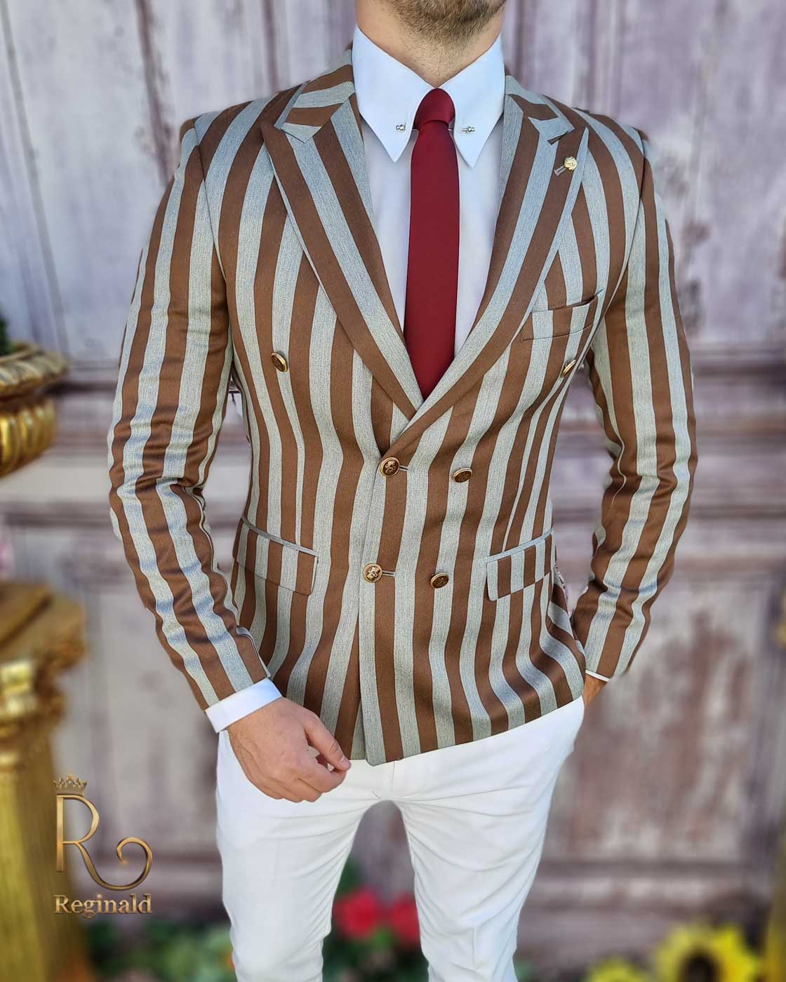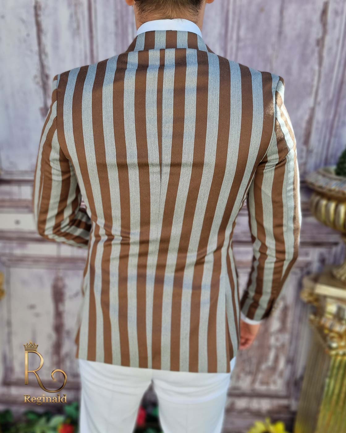 Sacou de bărbați gri in dungi maro, croiala Slim-Fit - SC655