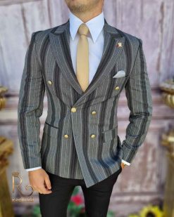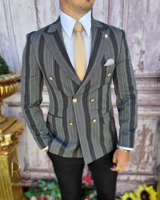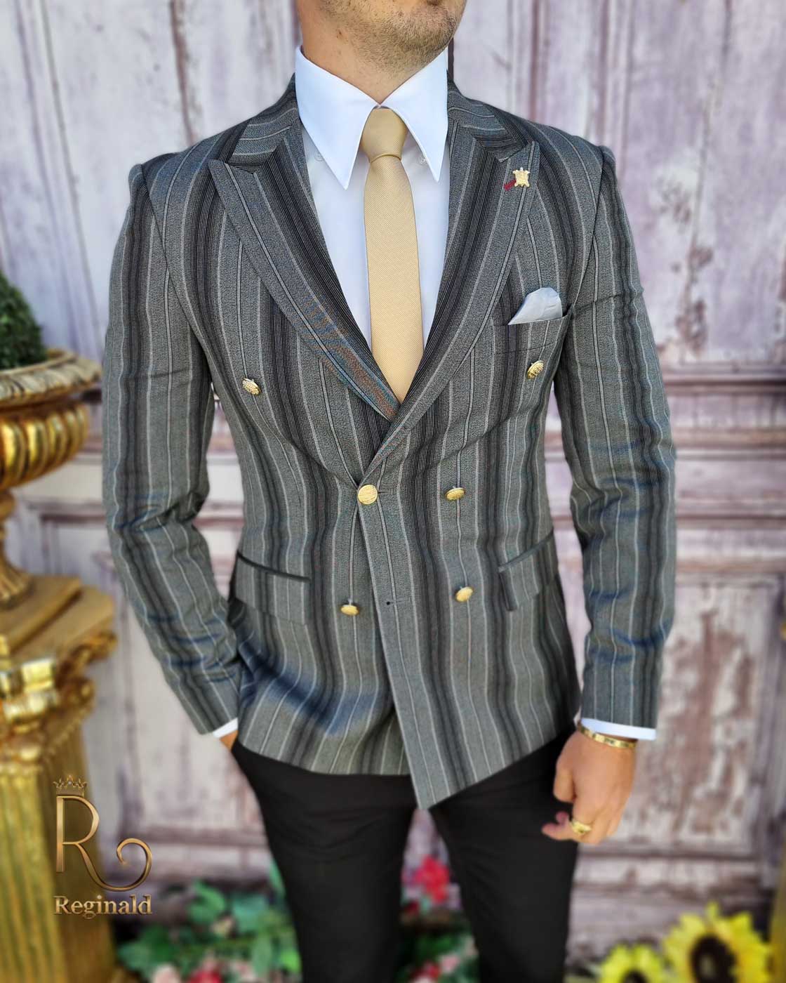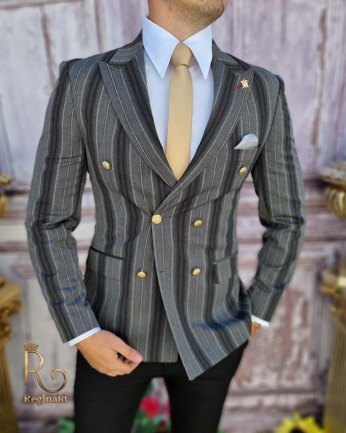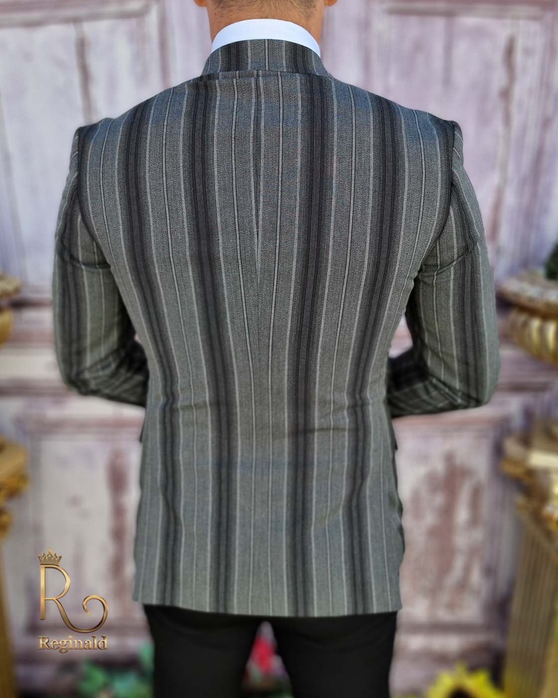Sacou de bărbați gri inchis in dungi, croiala Slim-Fit – SC664