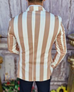Sacou de bărbați in dungi crem/albe, croiala Slim-Fit – SC616