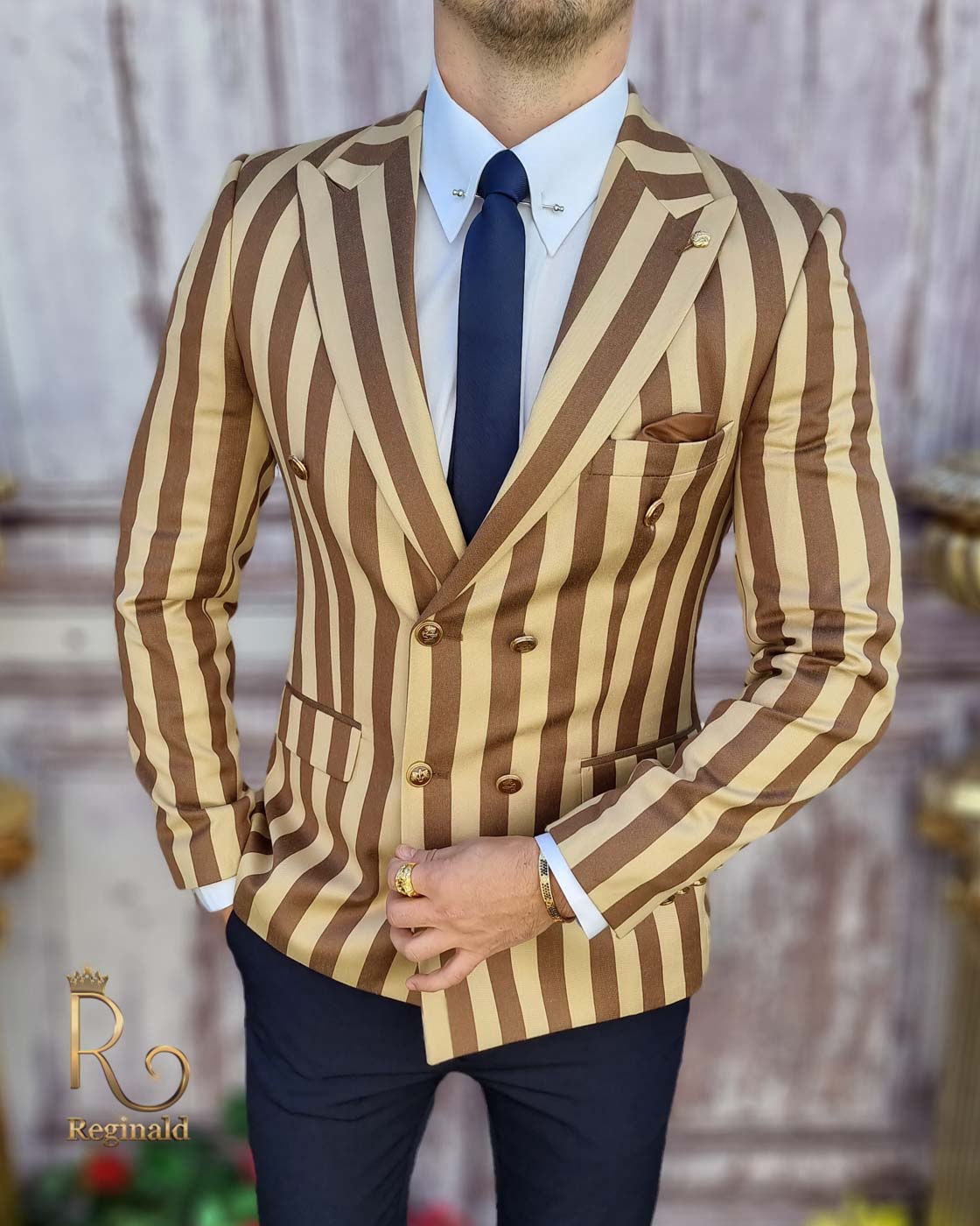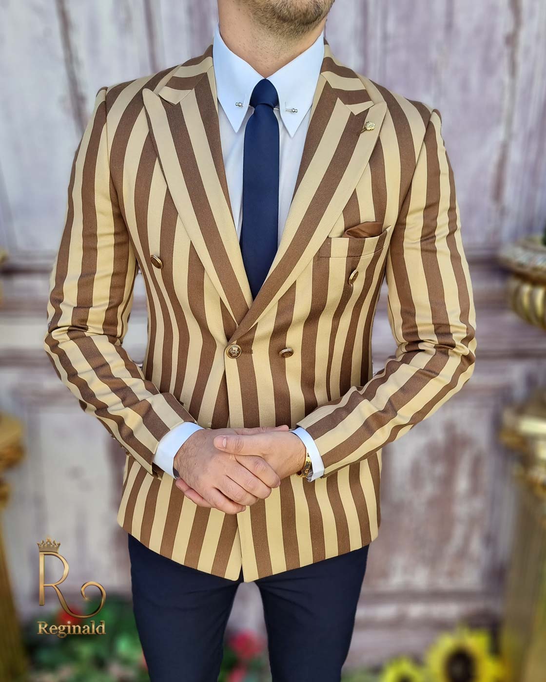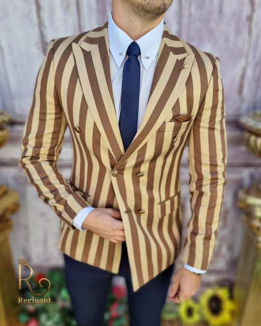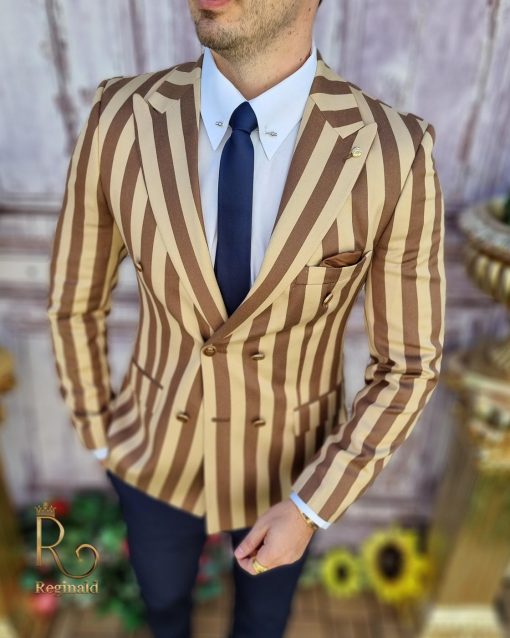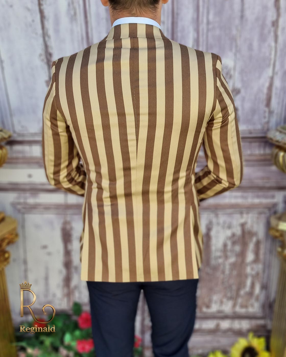 Sacou de bărbați, in dungi crem/maro, Croiala Slim-Fit – SC626