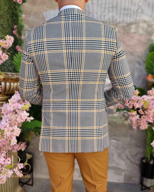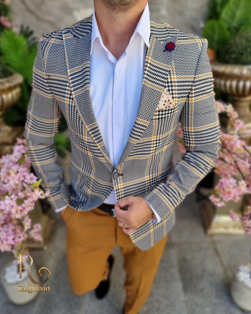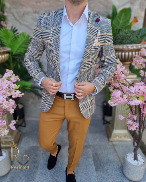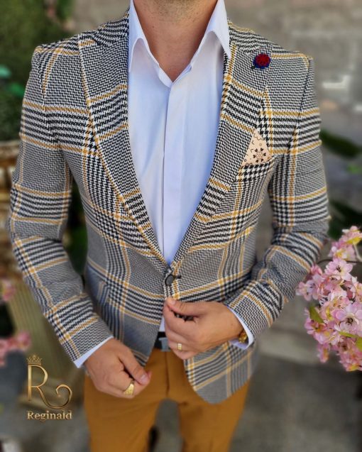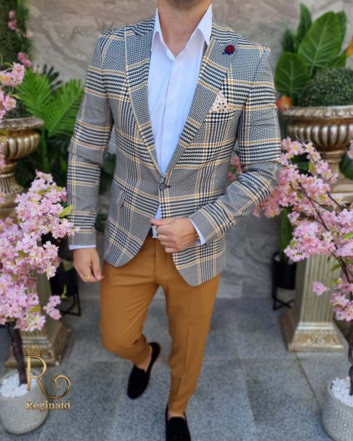 Sacou de barbati in patratele maro, croiala Slim-Fit – SC516