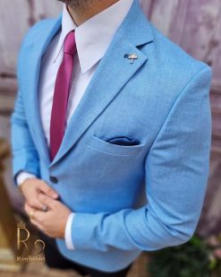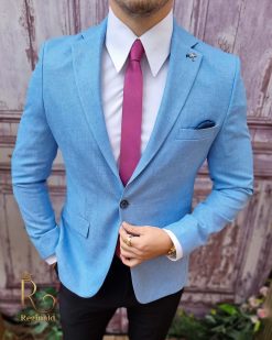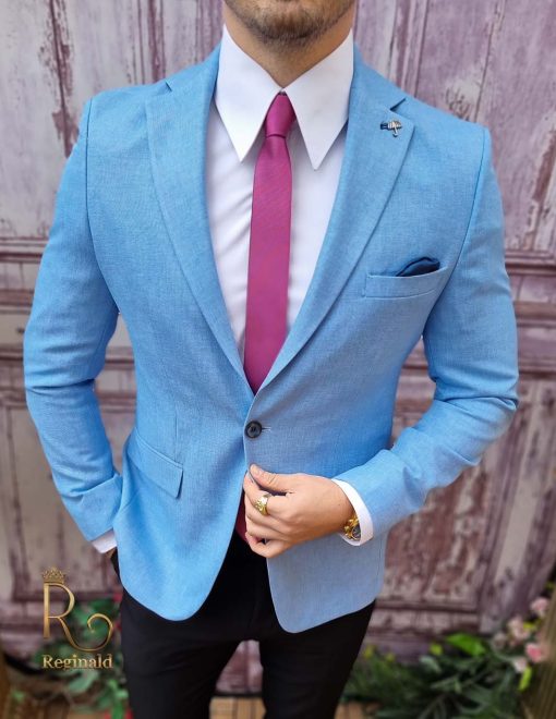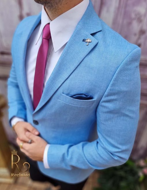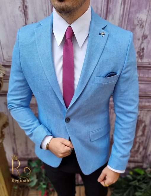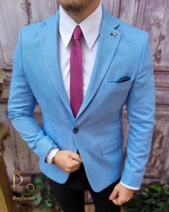 În general, un sacou de bărbați slim fit cu prindere într-un singur nasture poate fi purtat cu o cămașă elegantă și pantaloni asortați, pentru un aspect elegant.