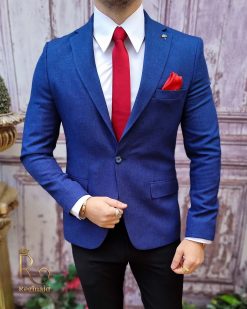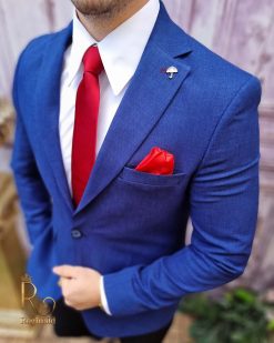 Un sacou de bărbați slim fit este un sacou de tipul croit pentru a fi mai ajustat pe corp, oferind o imagine mai modernă și elegantă. Aceste sacouri sunt de obicei realizate din materiale ușoare, cum ar fi poly-vascoza, și sunt concepute să fie purtate în contexte mai formale sau semi-formale.