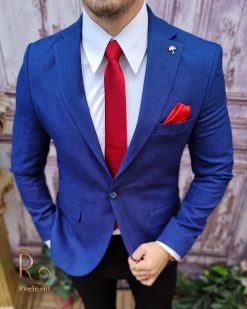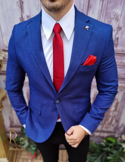 În general, un sacou de bărbați slim fit cu prindere într-un singur nasture poate fi purtat cu o cămașă elegantă și pantaloni asortați, pentru un aspect elegant.